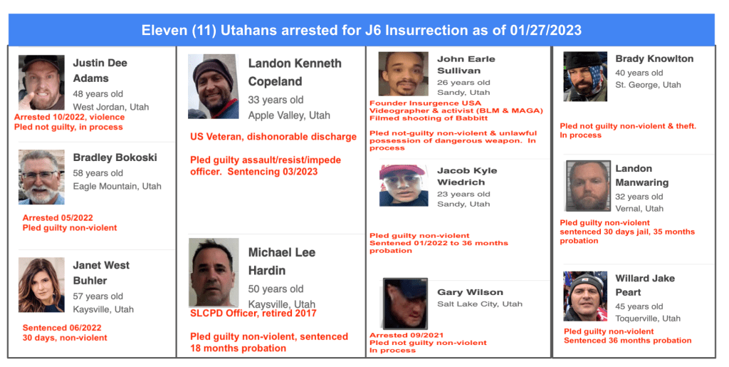 As of 01/27/2021, the arrests from the Jan 6th Capitol Siege include 11 Utah residents, two from nearby Hildale (Short Creek) and St. George, Utah. Kanab residents used social media to report FIVE KANE COUNTY residents and family who went to DC to Stop-the-Steal and fight for Trump with praise from local law enforcement. See KURW post Insurrectionists from Kanab Area