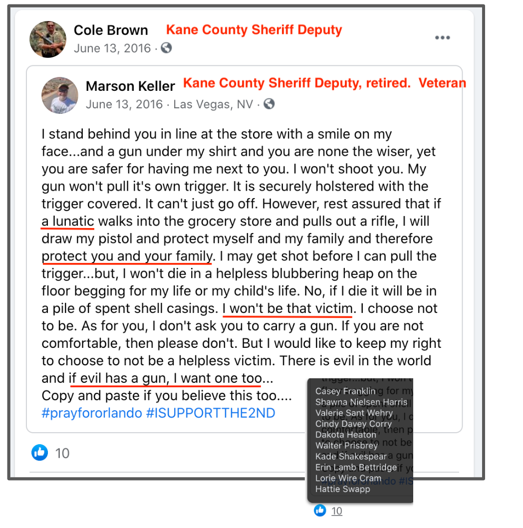 Dan is Jail Commander with the Kane County Sheriff’s Office Dan’s history of racism and extremism was exposed in an article by Left Coast Right Watch and the evidence is featured in a separate post: Exposed: Expel or Reform? Law Enforcement of Kane County Sheriff’s Office