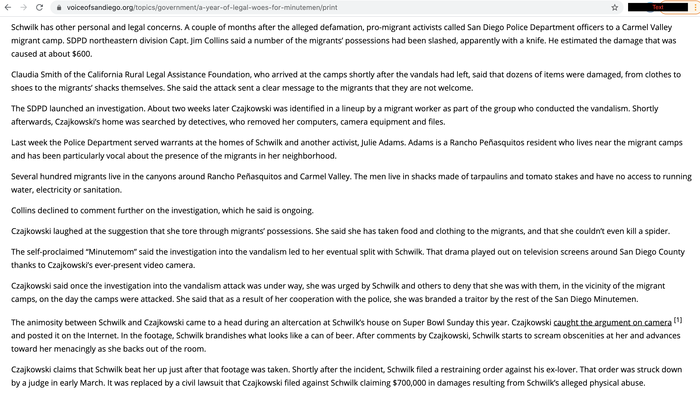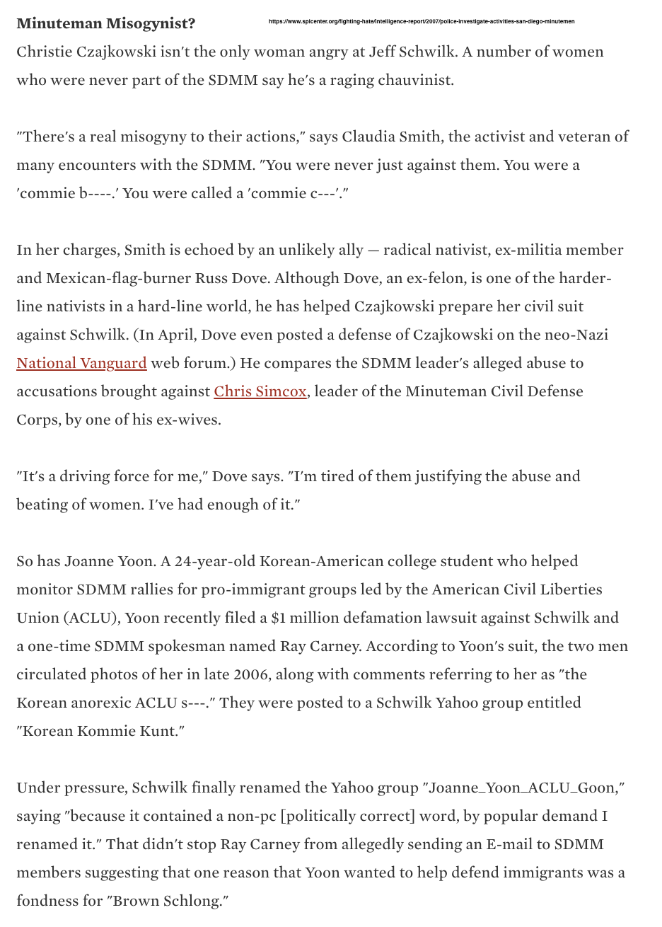 News and Social media evidence of extremism before Kanab: anti-immigration activist, defamation of ACLU activist, FBI and SDPD property search, misogyny and violence. Toggle left & right through the 21 screenshots below
