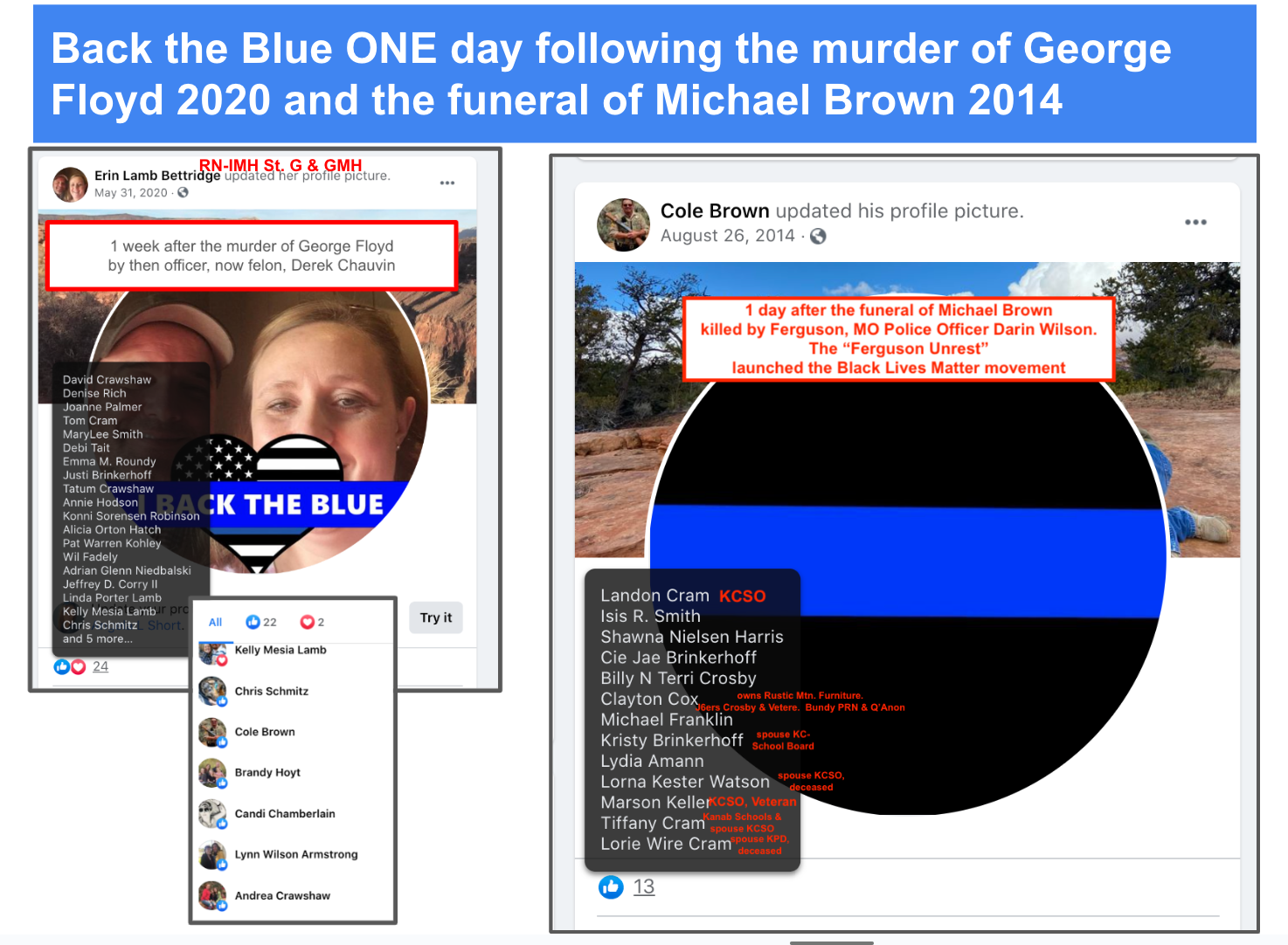 - 2020 saw ex-military responsible for the plot to kidnap Governor Whitmer of Michigan, counter-protests to Black Lives Matter rallies (see next section), Stop-the-Steal, Storm-the-Capitols, Capitol Insurrection, and social media radicalization. Kanab was not immune and saw counter protests to Black Lives Matter rallies, social media radicalization through Kanab Patriots Facebook page and Kanab/Fredonia Rant & Rave Facebook page, Medical Freedom Rallies, Stop-the-Steal rallies, and J6 Attendance