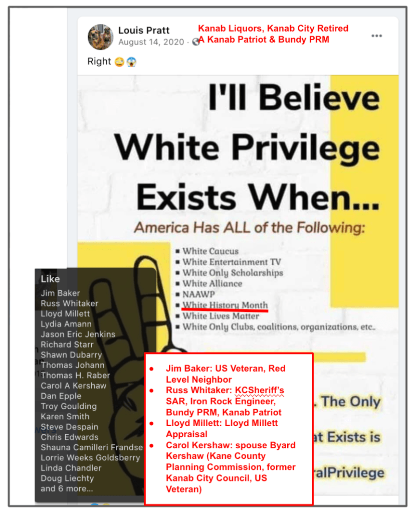 - 2021 brought Kanab Veteran promoted and attended People’s Rights Movement (Bundy Recruits Kanab then his PRM Assaults Officer in Idaho and Patriot Prayer Joins. Kudos Kane County Office of Terrorism)