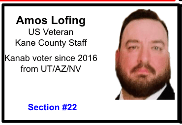 Amos Lofing lives in Kanab. His wife, Sarah Jane Sanders Lofing, owns a business and their evidence is featured in a separate post: Business Owner Bigotry: Sarah Lofing of The Shabby Iris Cottage Cakery
