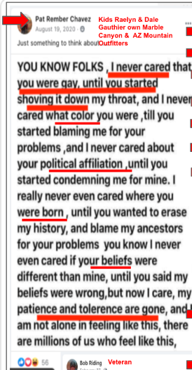 Some of the Kanab Veterans called the social justice demonstrators and business owners with Black Lives Matter signs in Kanab “American hating” and yet their posts describe the USA as a deteriorating, full of communist and a nation that they would not fight for today…