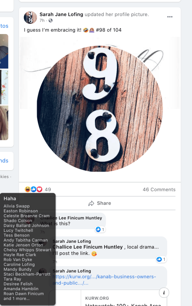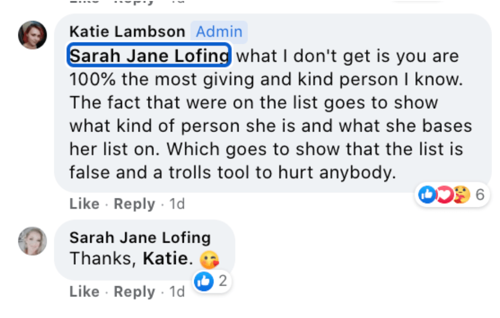 (updated 11/06/2024). This review of evidence for Sarah Jane Lofing is at the request of a concerned resident who saw this statement by Katie Lambson, admin of local FB platform for hate Kanab/Fredonia Rant & Rave.
