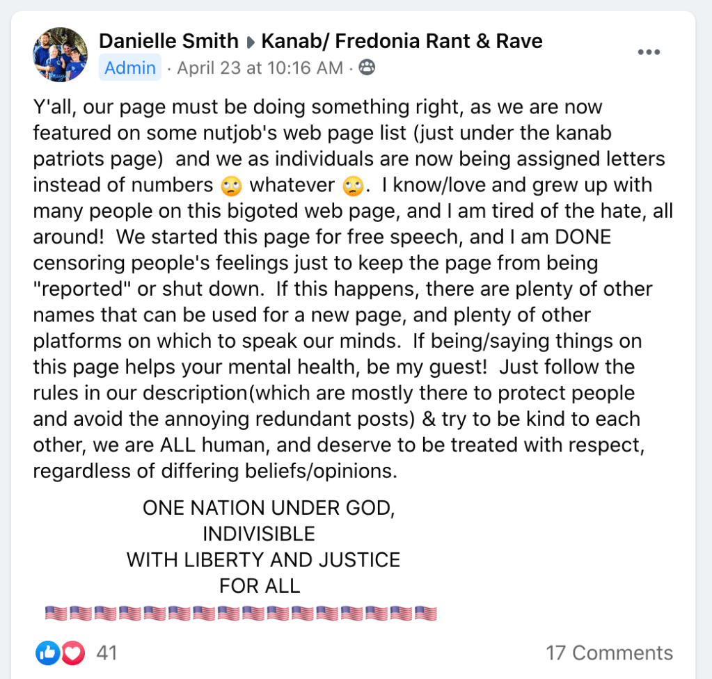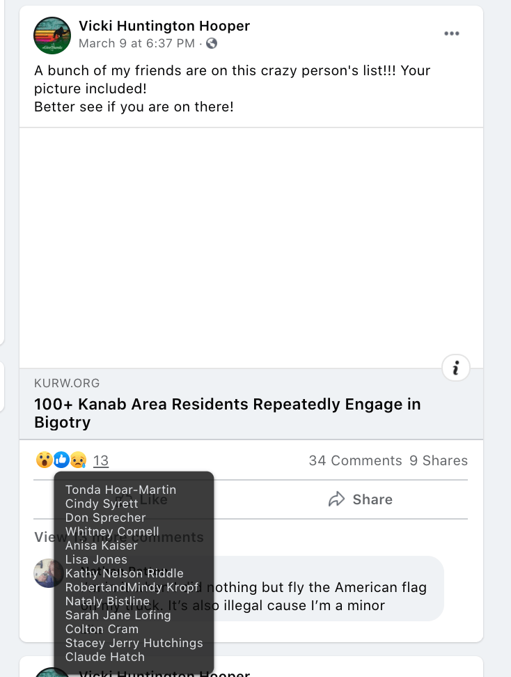 - local FB extremist page “Kanab Patriots” Recruits and Radicalizes Facebook Extremists