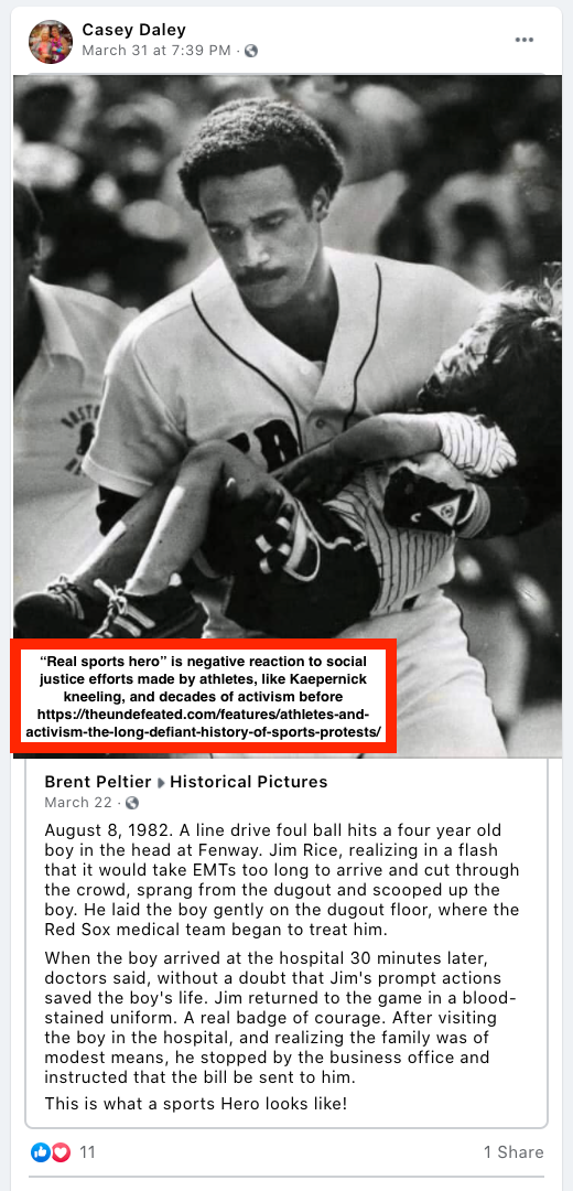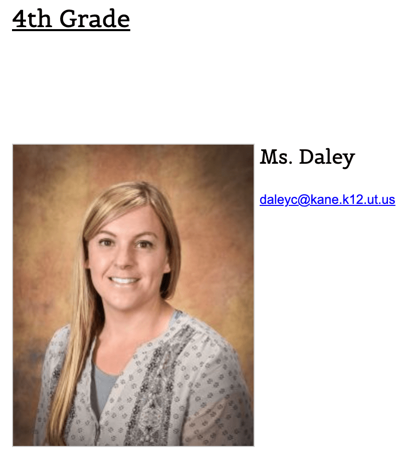 Casey is a 4th grade teacher at Kanab Elementary School. There are only two public posts. One promotes false narratives about Biden, conspiracy theory about Pelosi, hatred of any Democrat, misinformation about Trump accomplishments, anti-media and Hollywood…everything in one post and Casey “liked” it. The second promotes efforts to discredit social justice activism by athletes with the “this is what real sports heroes look like”. Read more about the history of athlete activism https://theundefeated.com/features/athletes-and-activism-the-long-defiant-history-of-sports-protests/