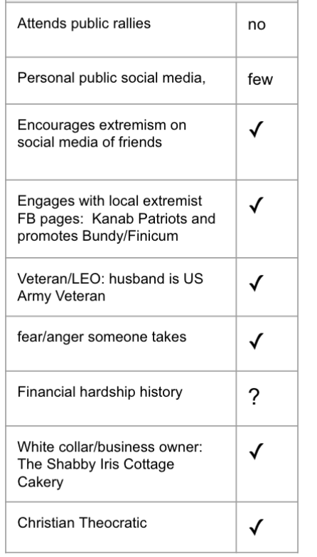 - Engages with extermist groups on social media see Understanding Social Media in Kanab: Groups, Pages & Individuals and Kanab FB Page “Kanab Patriots” Recruits and Radicalizes Extremists