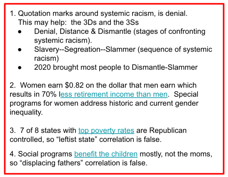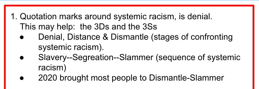- denies systemic racism
