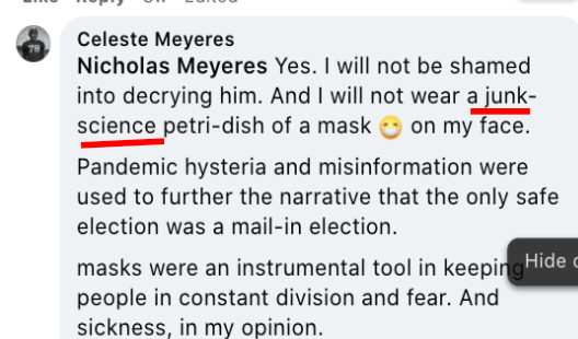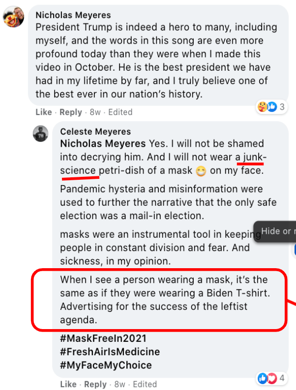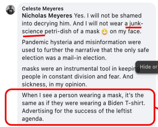 - Co-opts “my body my choice” for mask opposition