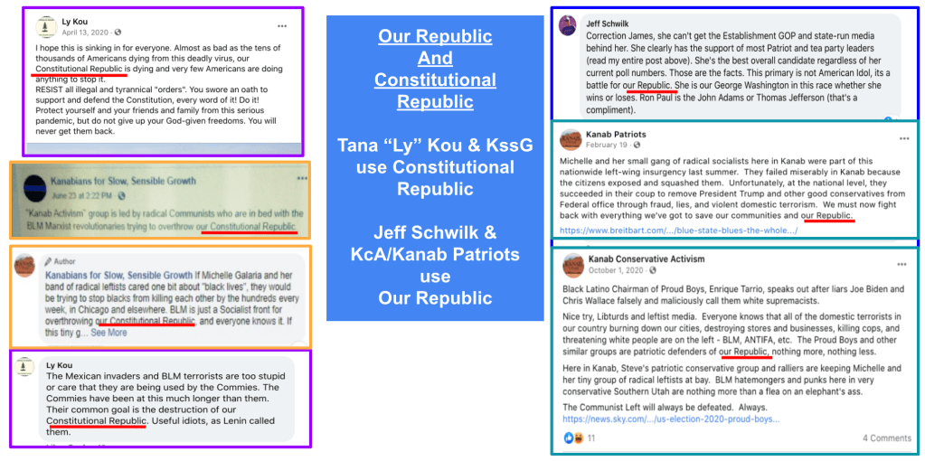 The slideshow below shows new evidence of Jeff Schwilk & Tana Kou as Kanab Patriots (formerly Kanab Conservative Activism) FB page administrators in addition to the previous post “Kanab Patriots” Recruits and Radicalizes Facebook Extremists