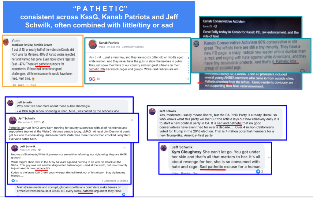 Here’s the compelling evidence by category: Transphobia, Racism, Sexism, Classism, Bigotry of Democrats, Conspiracy Theories (George Floyd, Me Too, Capitol Insurrection, Covid) and false narratives (Covid, masks) and Anti-Government Extremist Rhetoric.