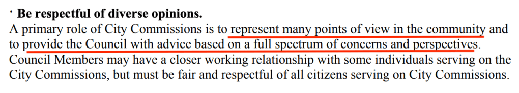 - represent many view points in the community and provide the Council with advice based on a FULL spectrum of concerns and perspectives