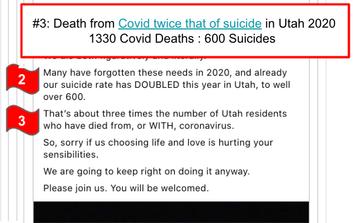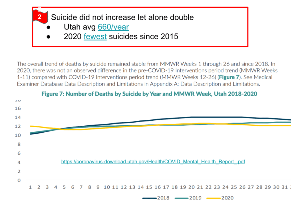 - Misrepresents suicide data and Covid deaths
