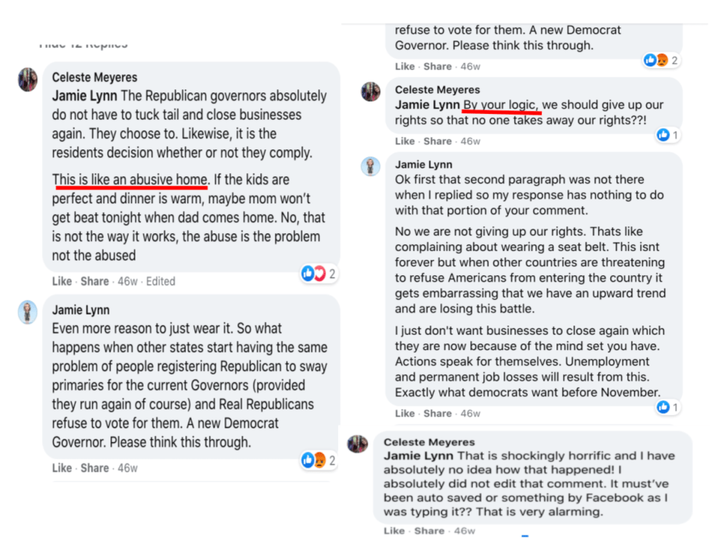 - Public health mandates are just more government transgressions & violations of rights (red boxed post is fact check by KURW) equating to abusive home with a wife beaten