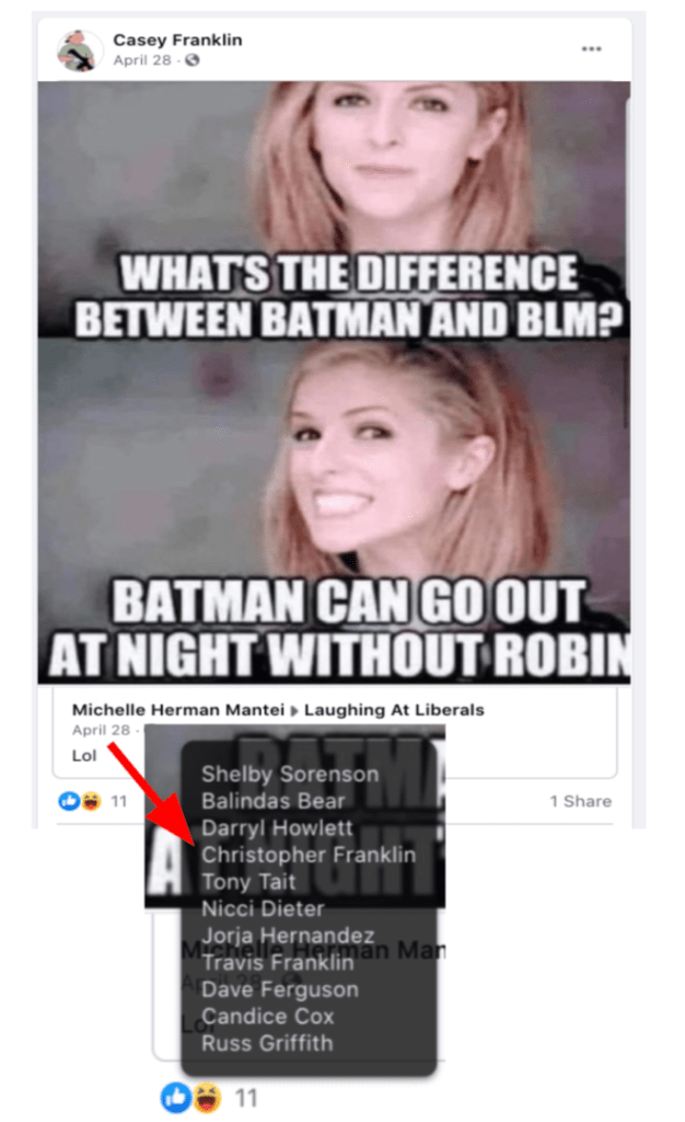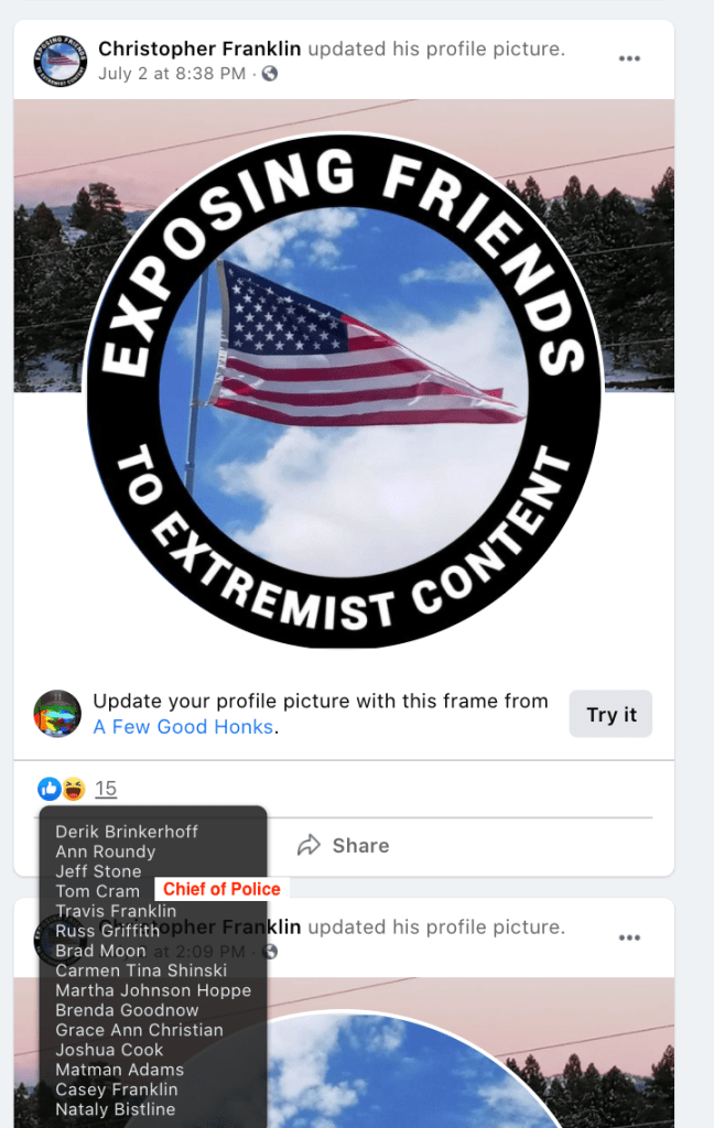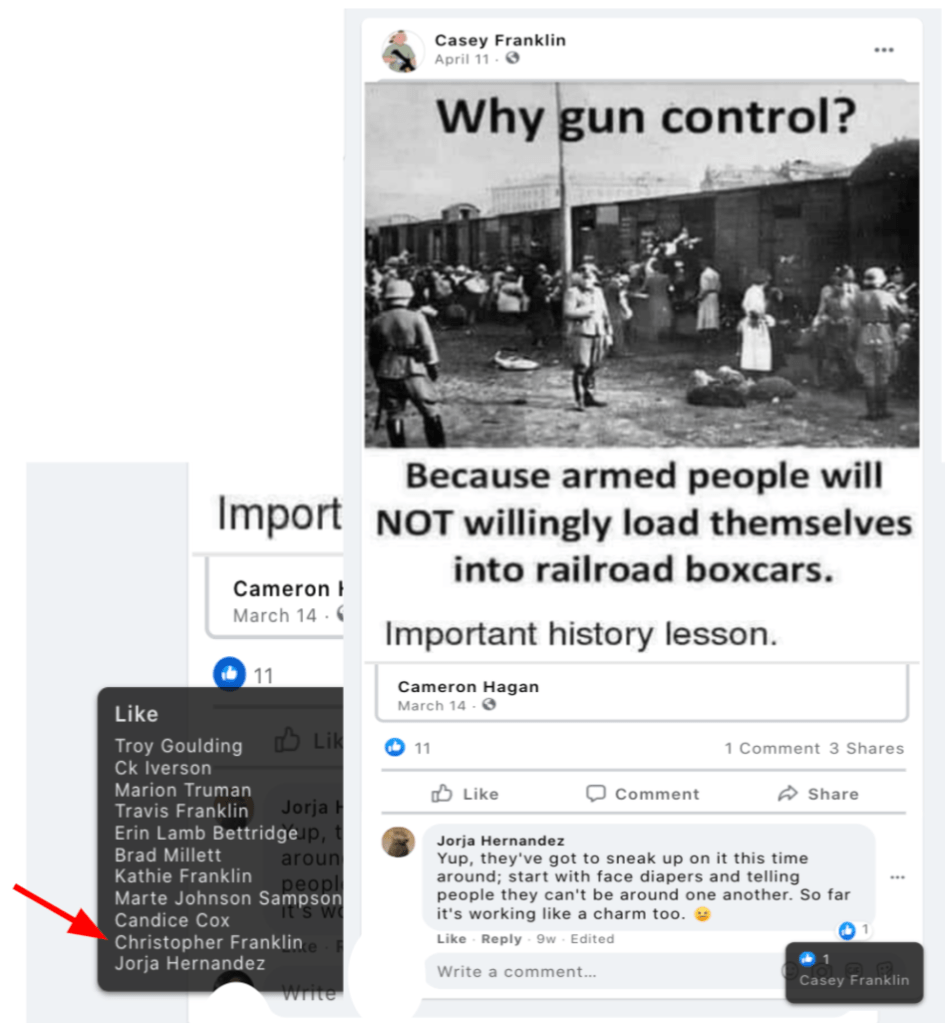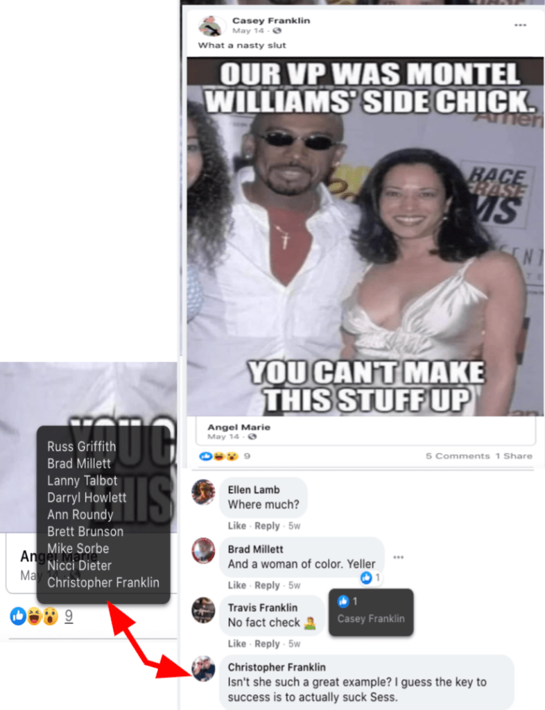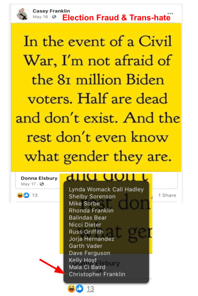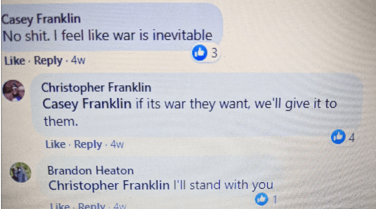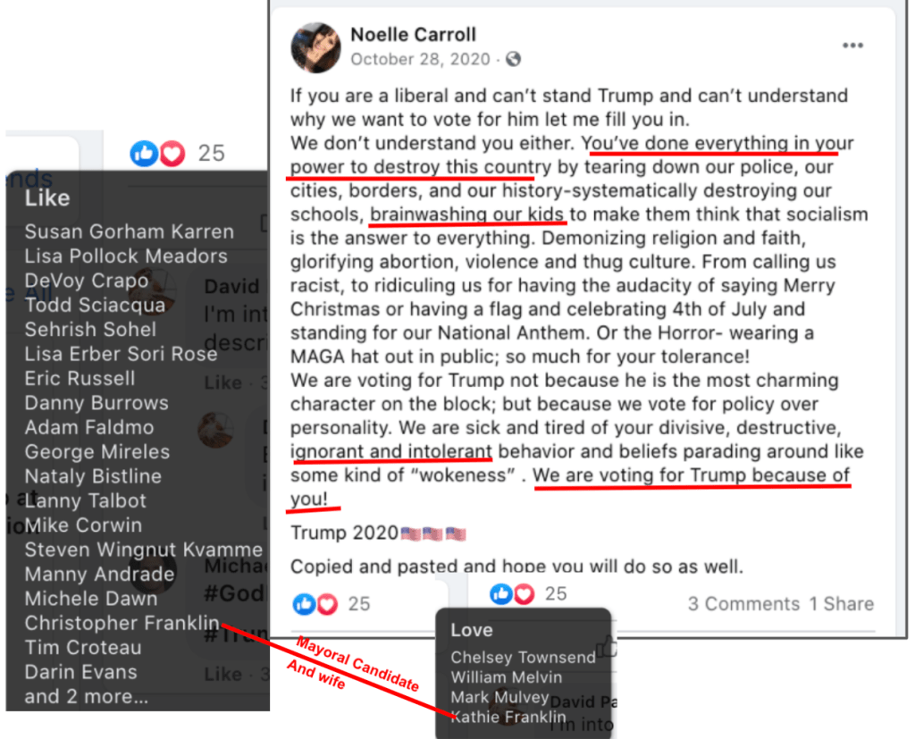 - list of evidence of Franklin’s public activity on FB as it relates to bigotry & extremism