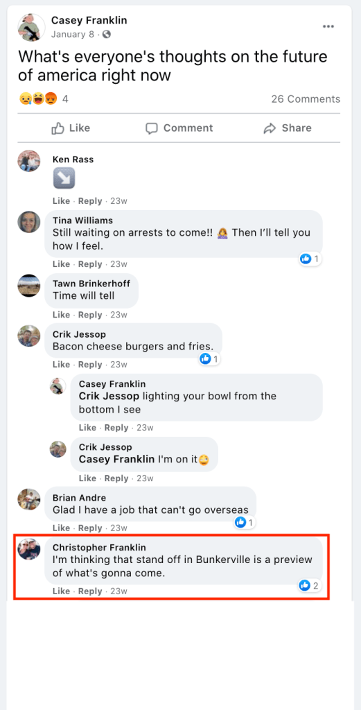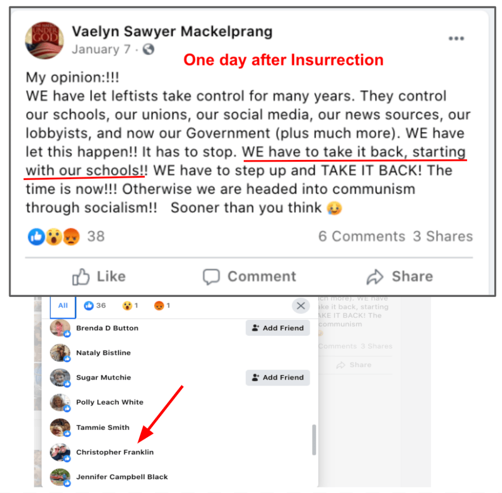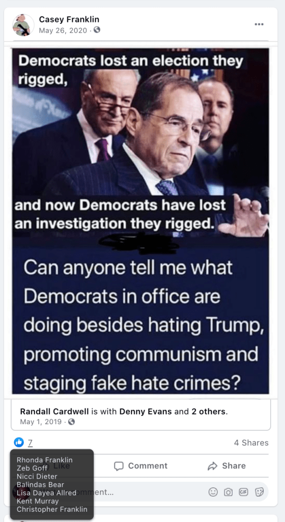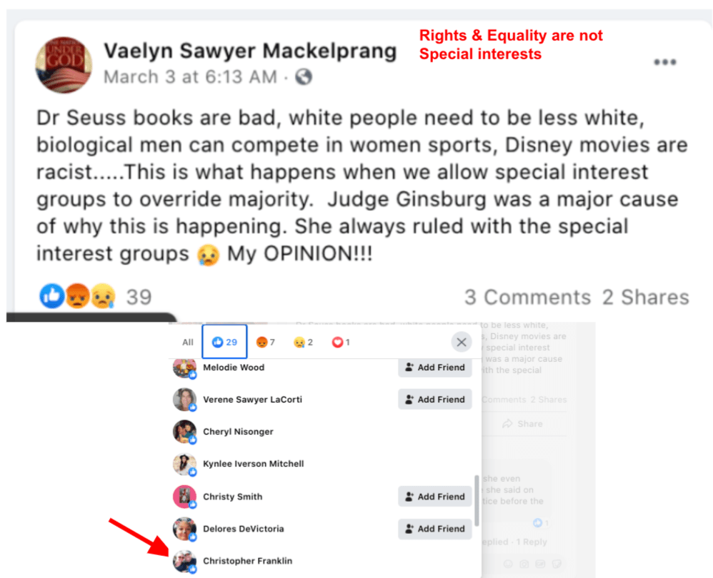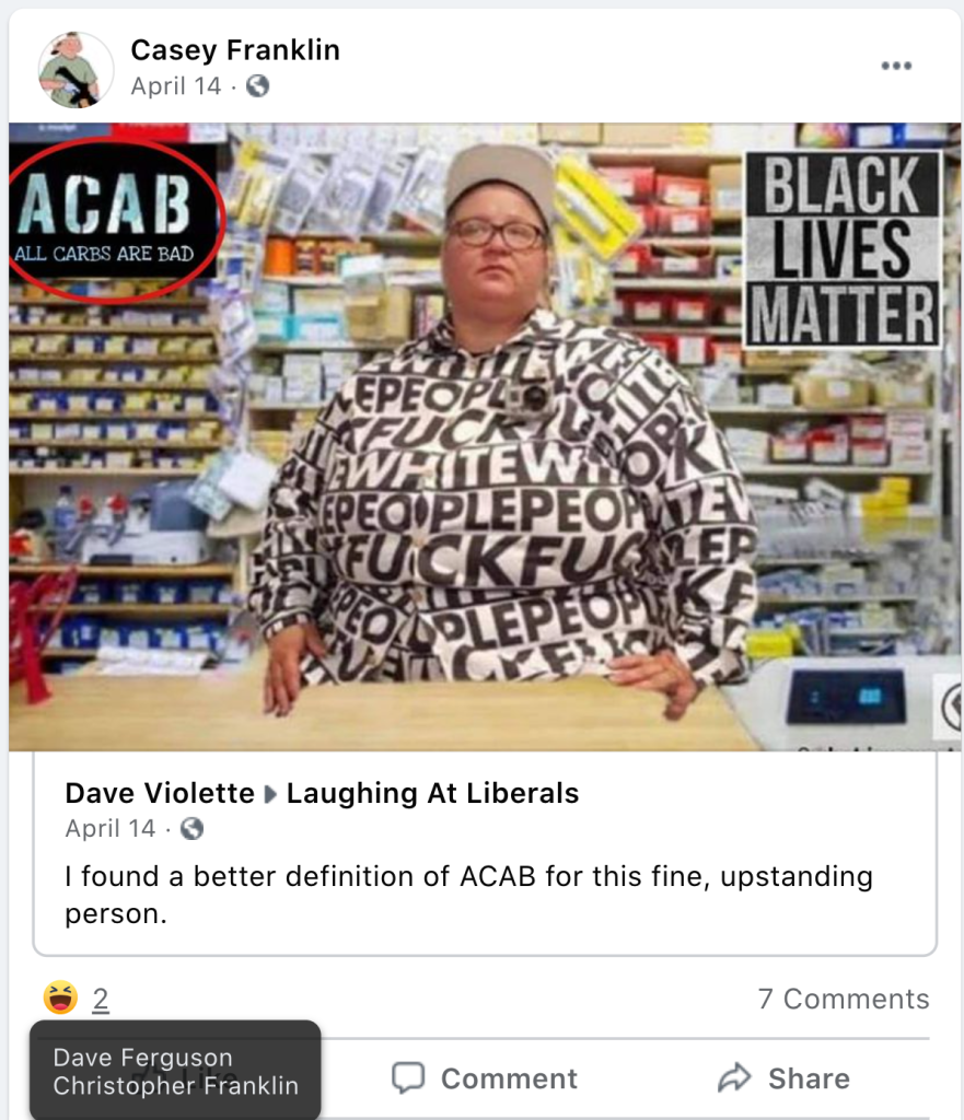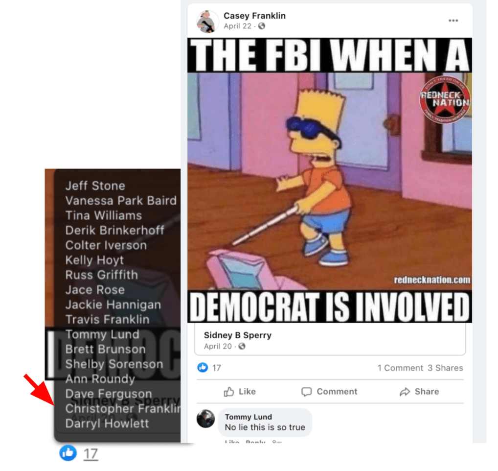 - list of evidence of Franklin’s public activity on FB as it relates to bigotry & extremism