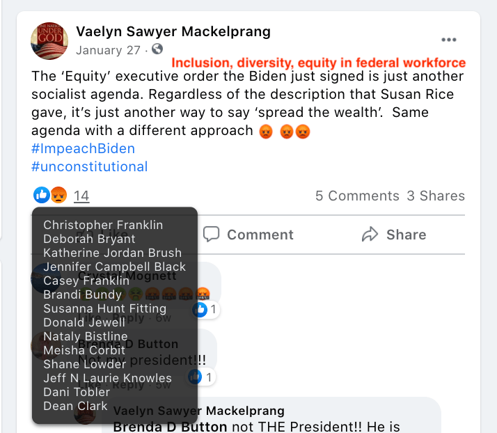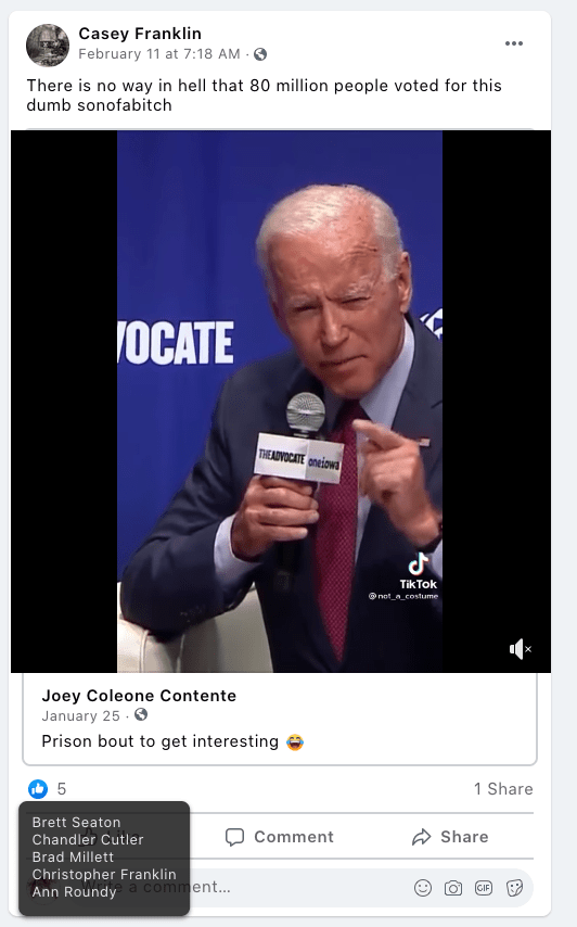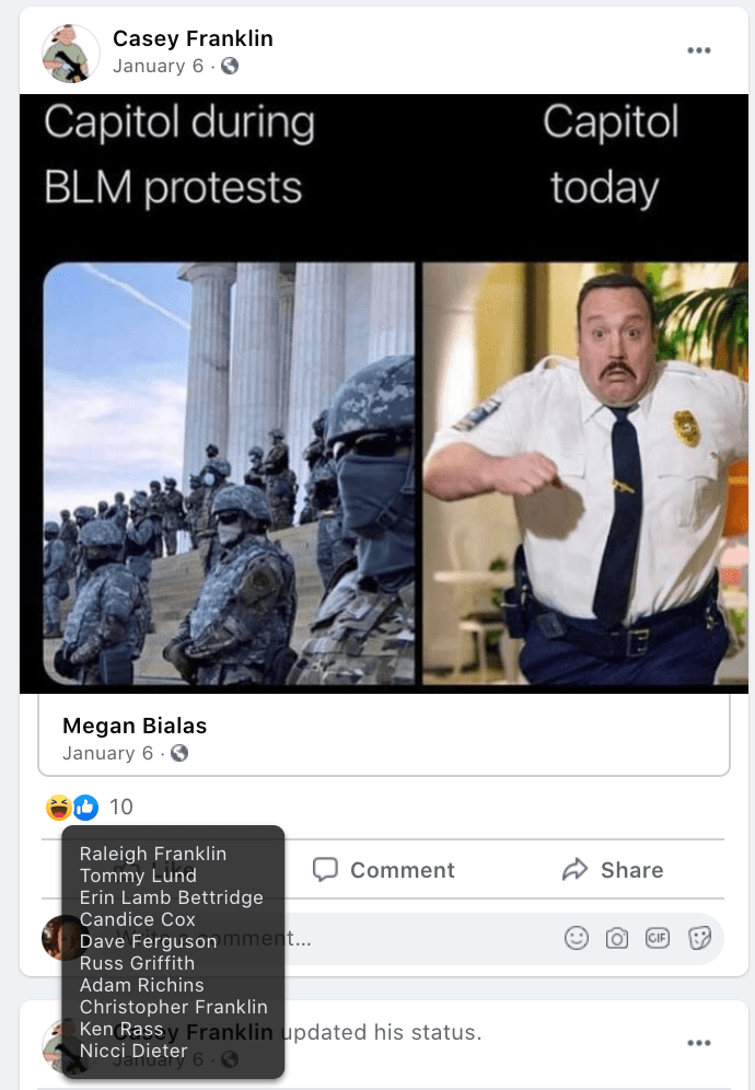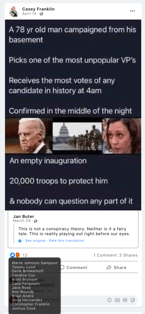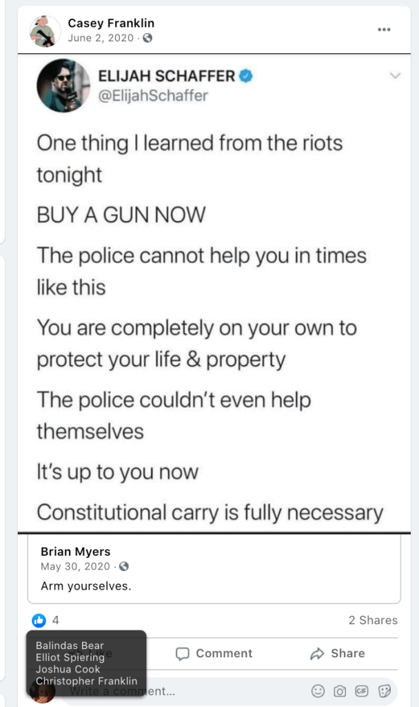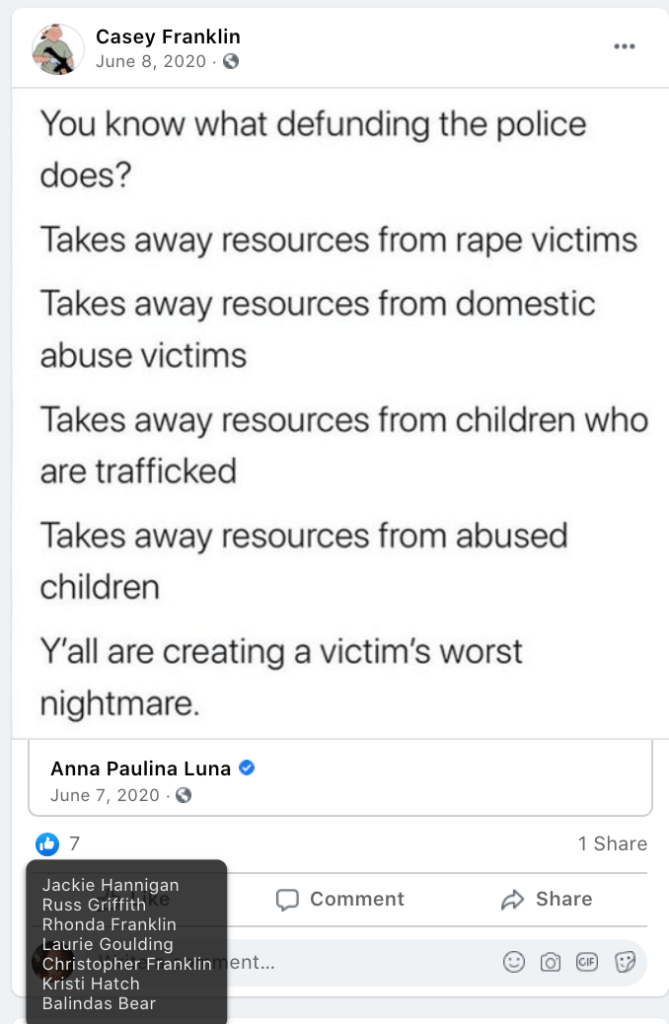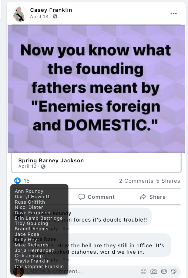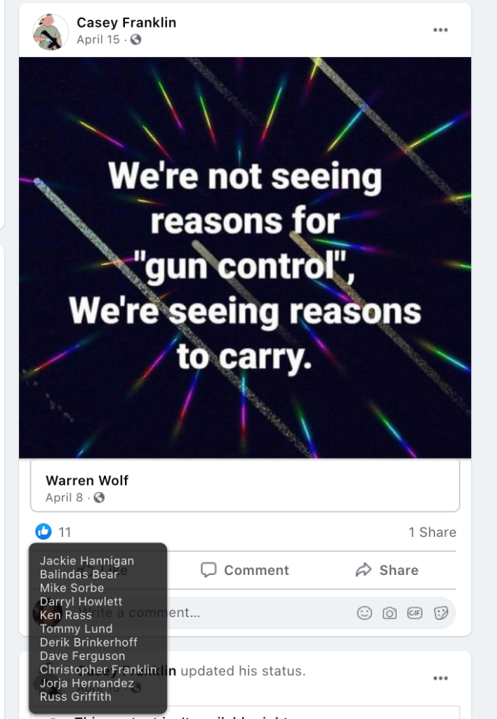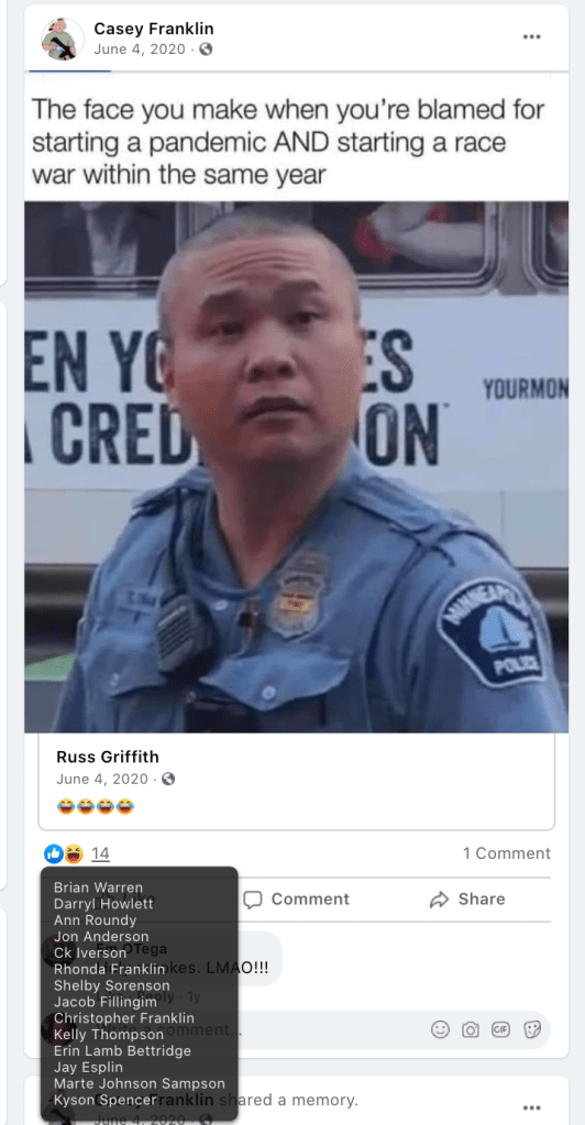 - list of evidence of Franklin’s public activity on FB as it relates to bigotry & extremism