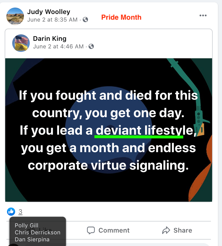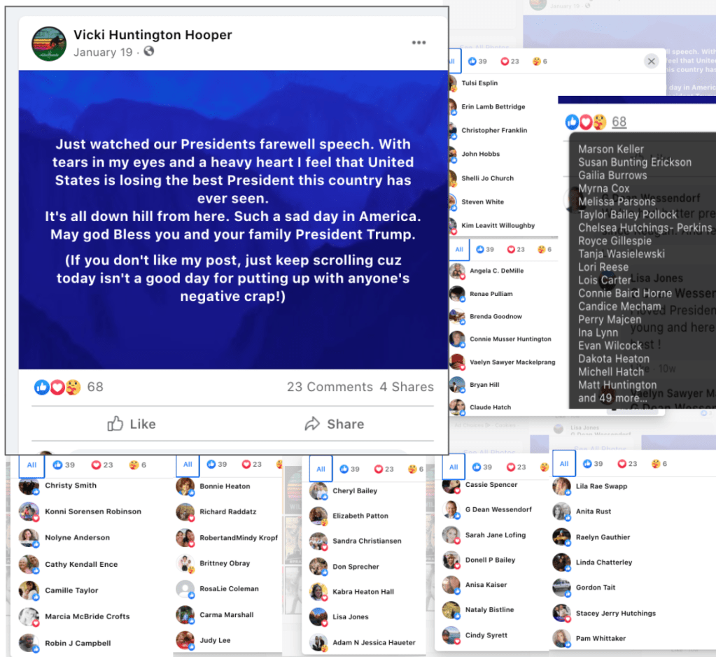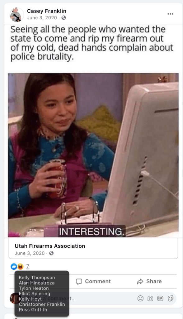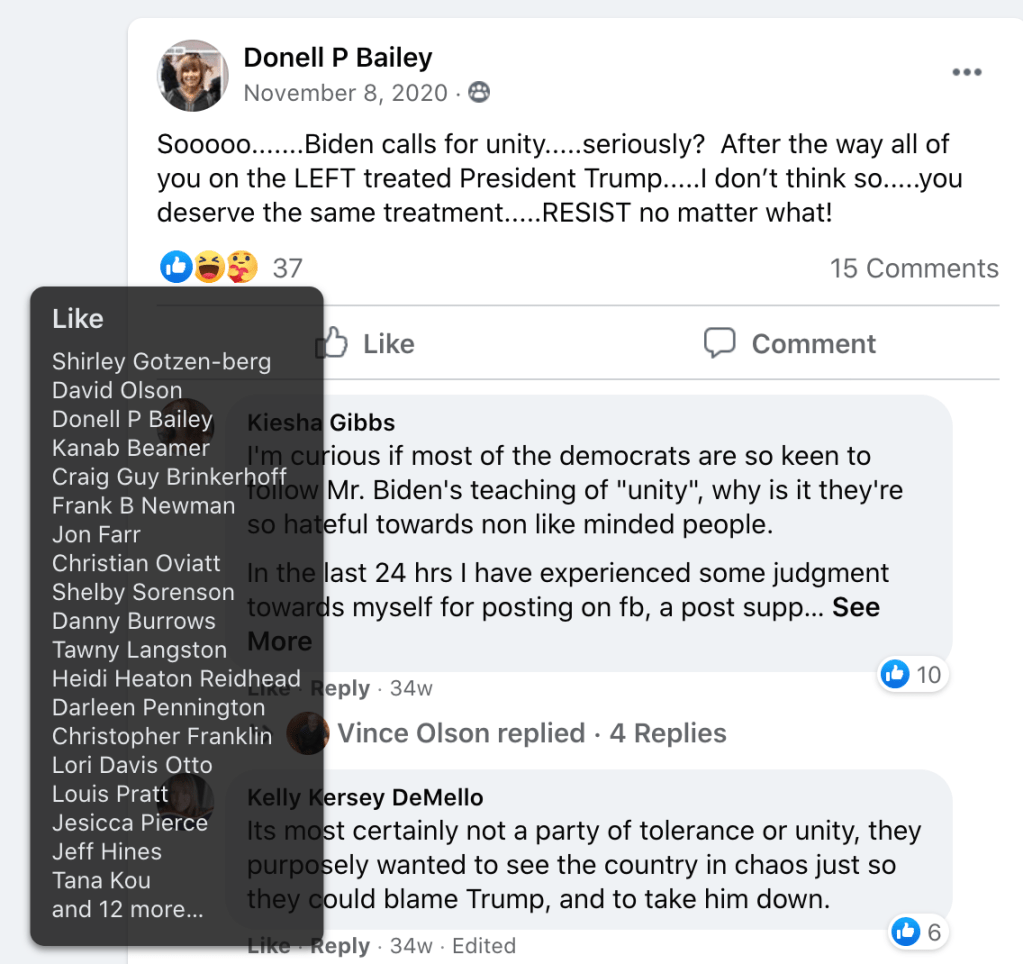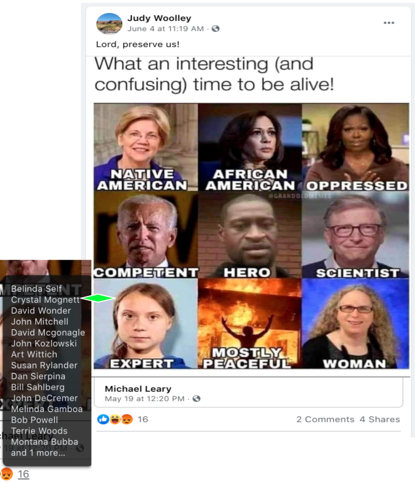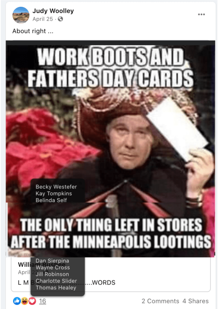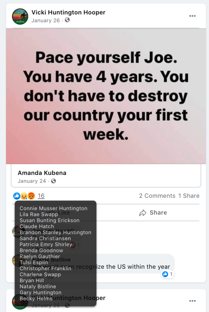 - Kanab Patriots: a FB created to target Black Lives Matter supporters then continued with general far-right rhetoric and targeting liberals.