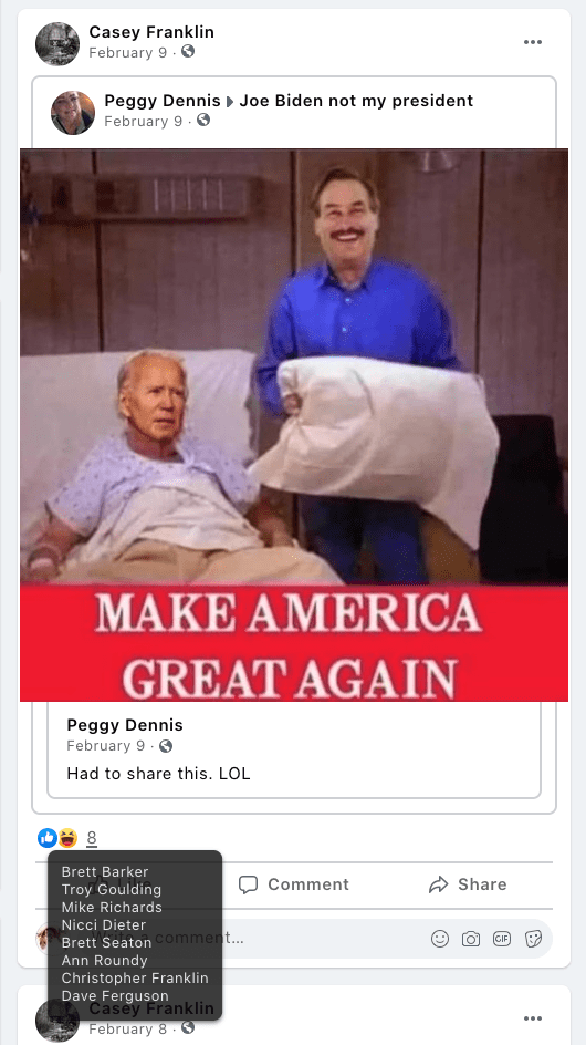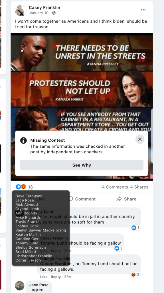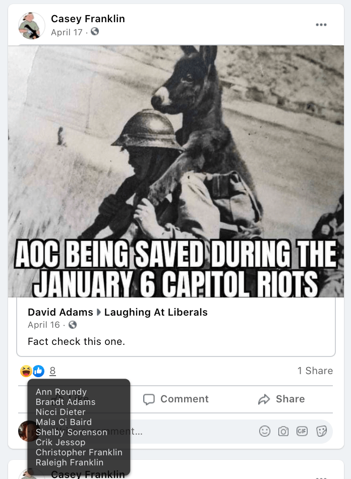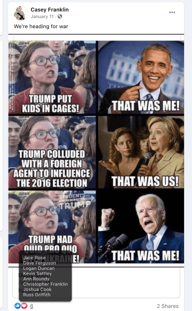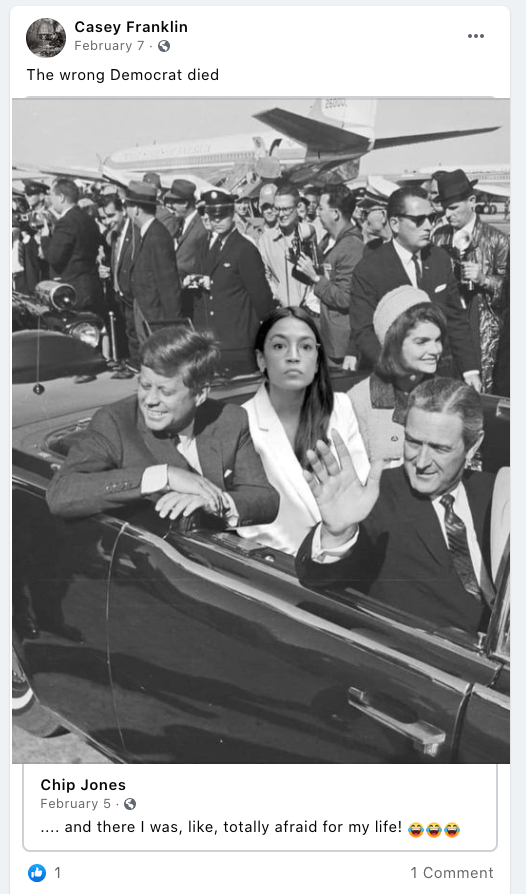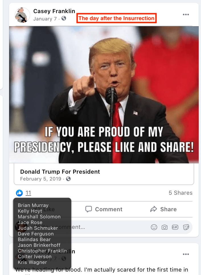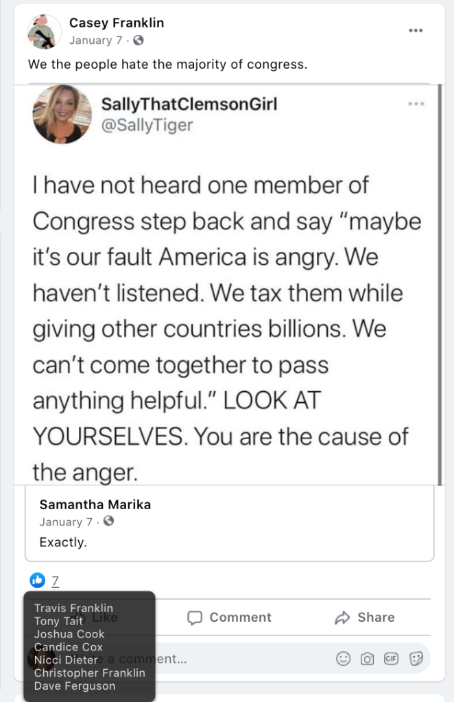 - list of evidence of other people who Franklin supports posts of extremism or bigotry