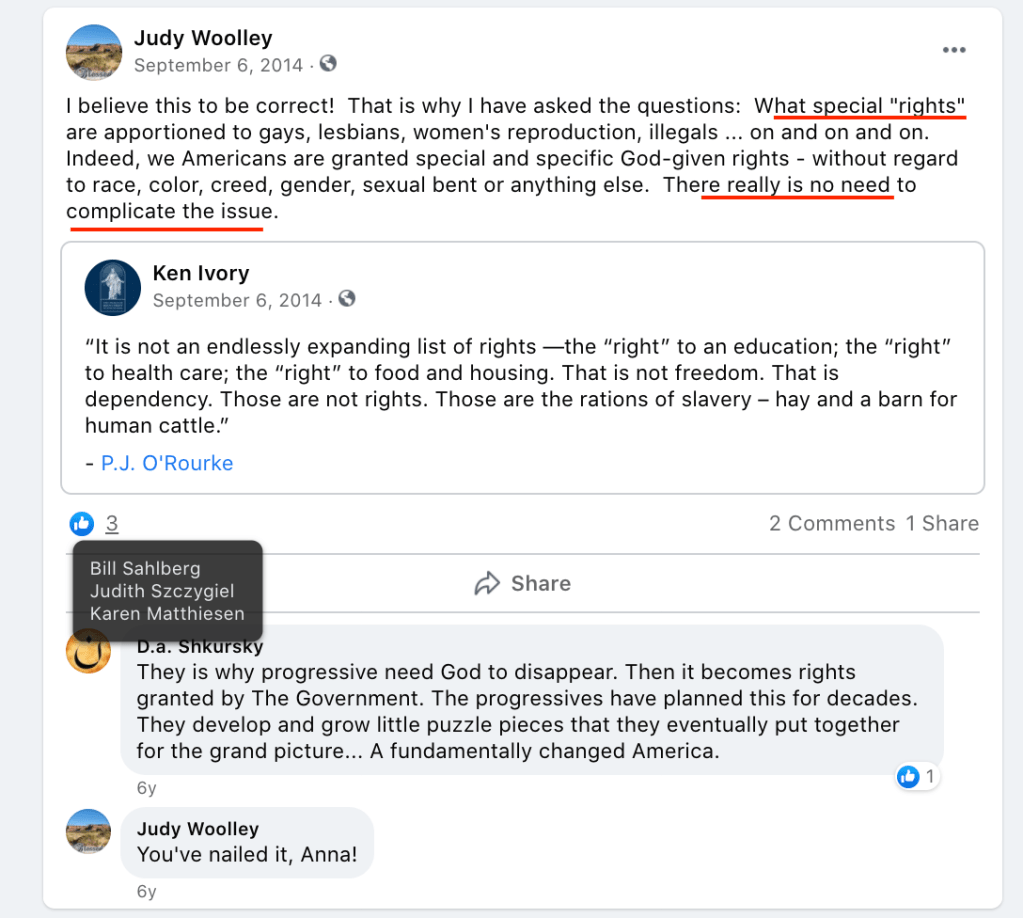 Chris supported on one of many of Ken Gotzenberg’s posts of extremism and/or bigotry, and it has a lot of topics (listed above and marked in red below.