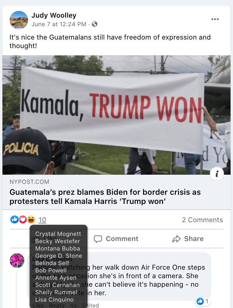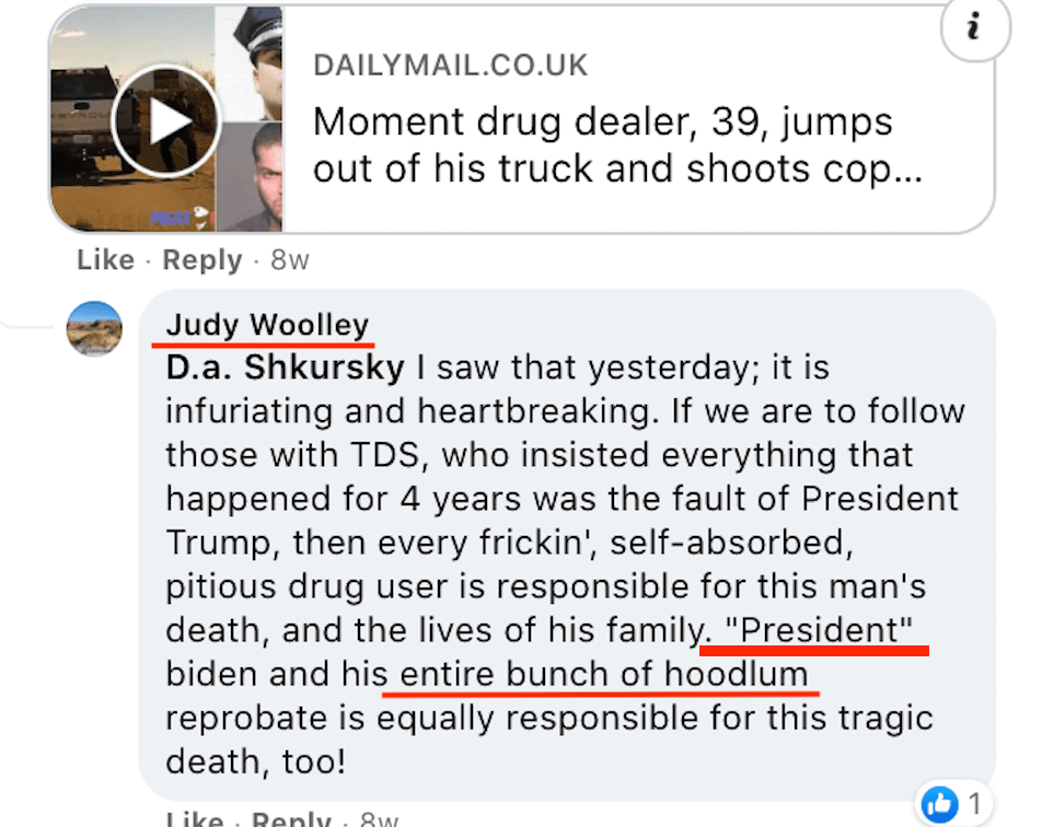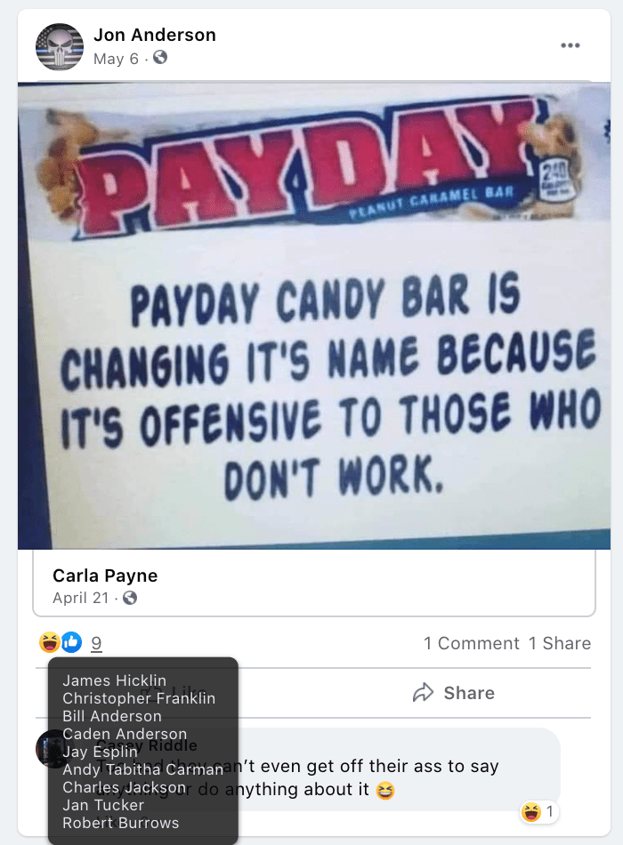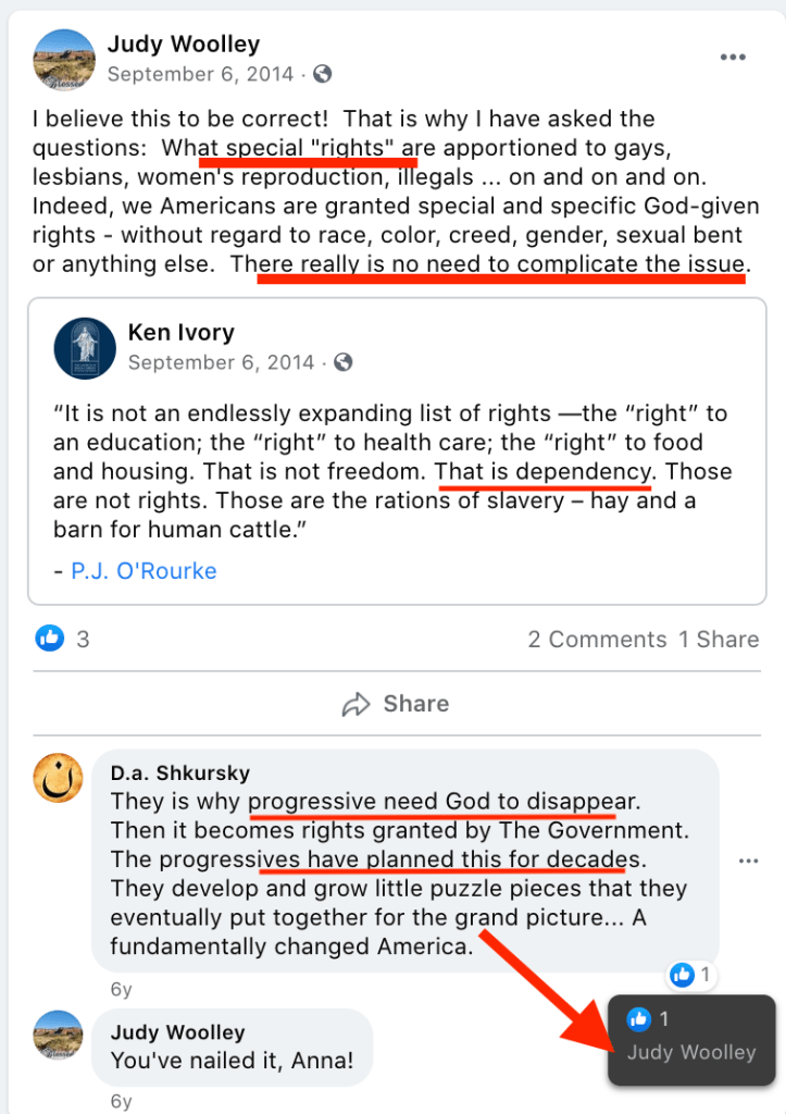 - Random supported posts and evidence of bigotry/extremism from that person