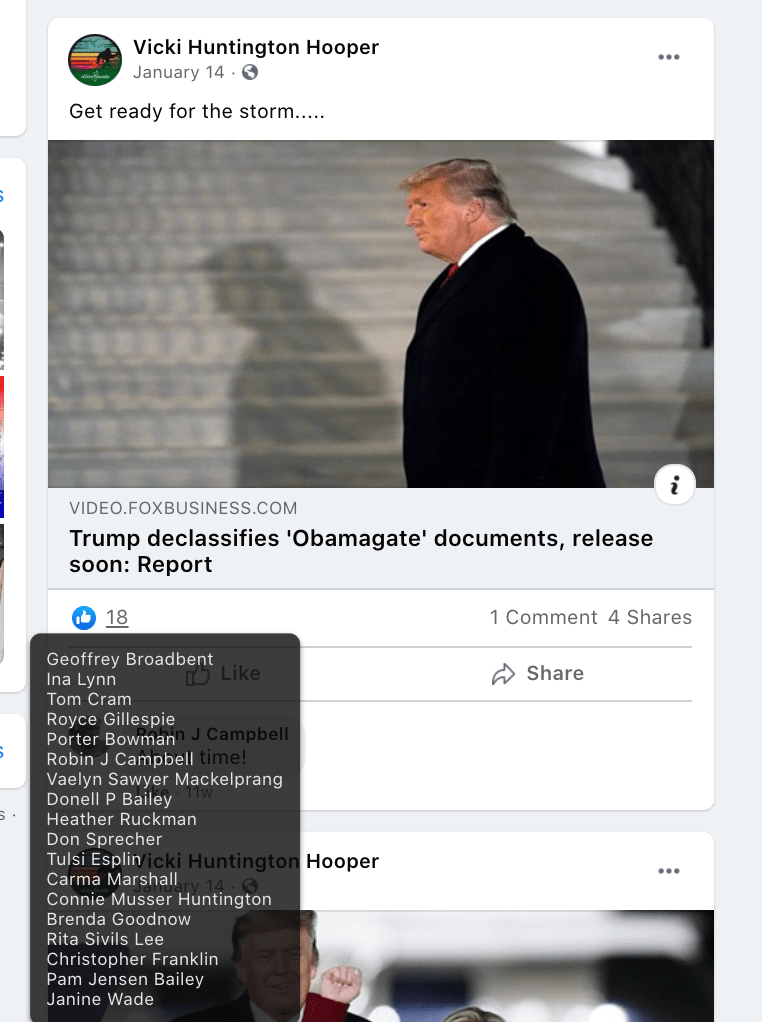 - Vicki Huntington Hooper: significant extremism & conspiracy theories including one shared with KPD Chief Cram