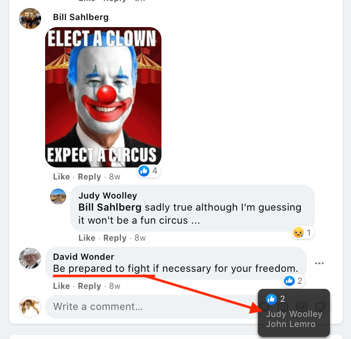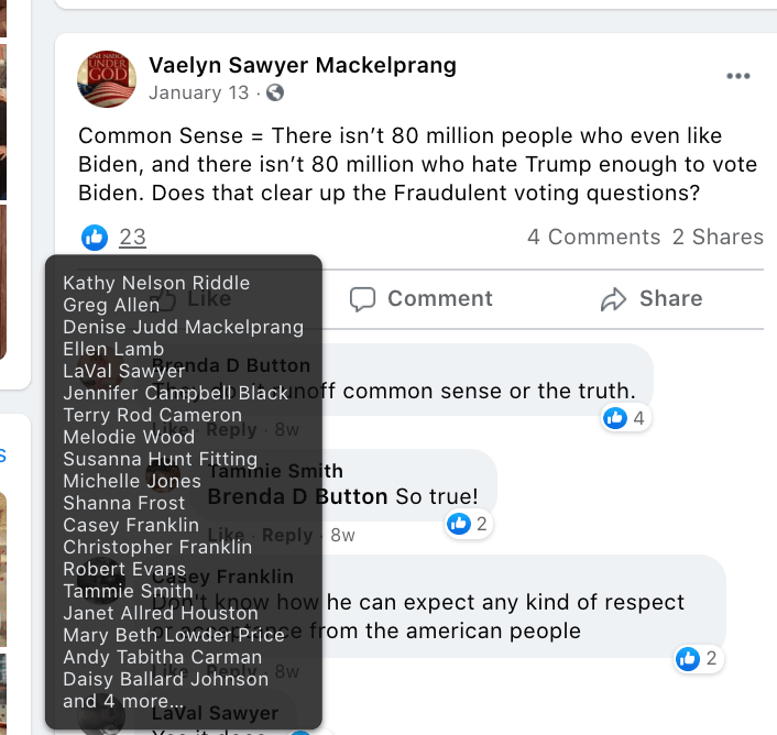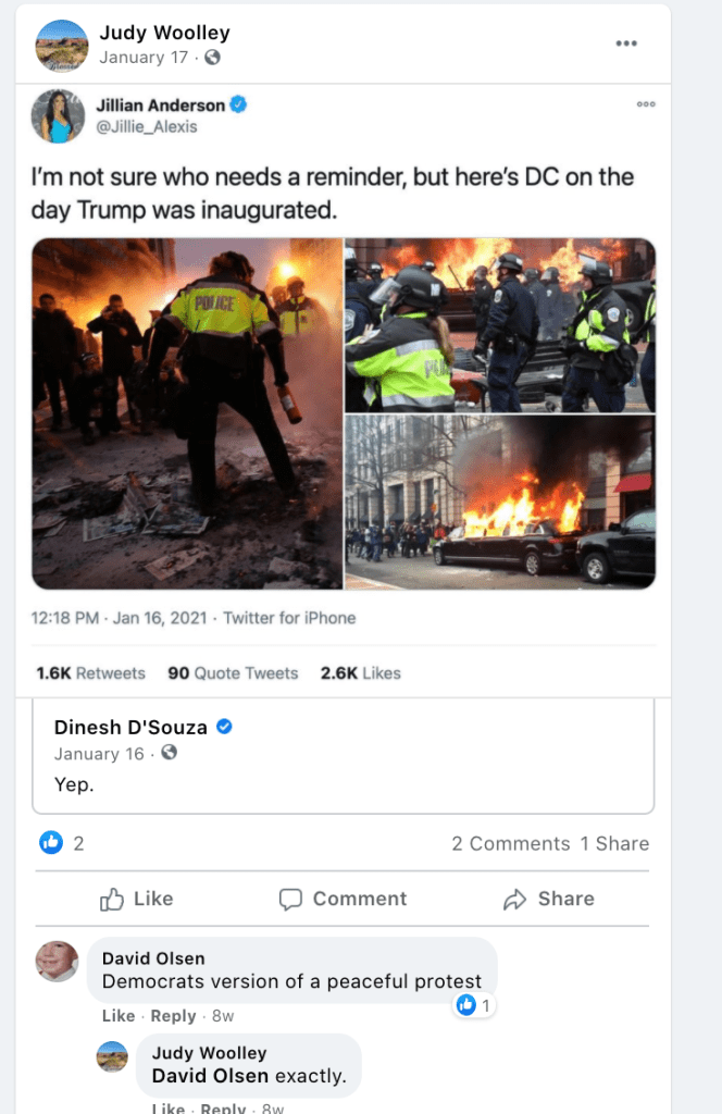 His posts include support of J6er David Crosby during which Crosby posted the following from DC Stop-the-Steal 01/06/2021 and Mayor Johnson supported it:
