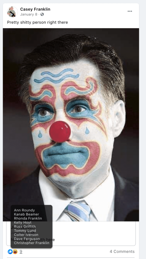 Colten Johnson was elected Mayor of Kanab. He is a teacher at Kanab High School and was included in previous post Public School Employees. Kane County School District. He is a Kanab Patriot which has been featured in many KURW posts including Kane County Commissioner Calls Kanab Patriots a Hate Group, But They Are Not the Fringe. Mayor Johnson’s public position and depth of anti-government engagement places him among 75 Meet Your Neighbors: Red Level. He fuels division using terms “left wing green energy”, “well funded anti-gasoline” “tree huggers” within posts of disinformation on the topics of energy and logging and public lands and absolute alarmism for social/racial equity efforts, public health efforts and the 2020 election.