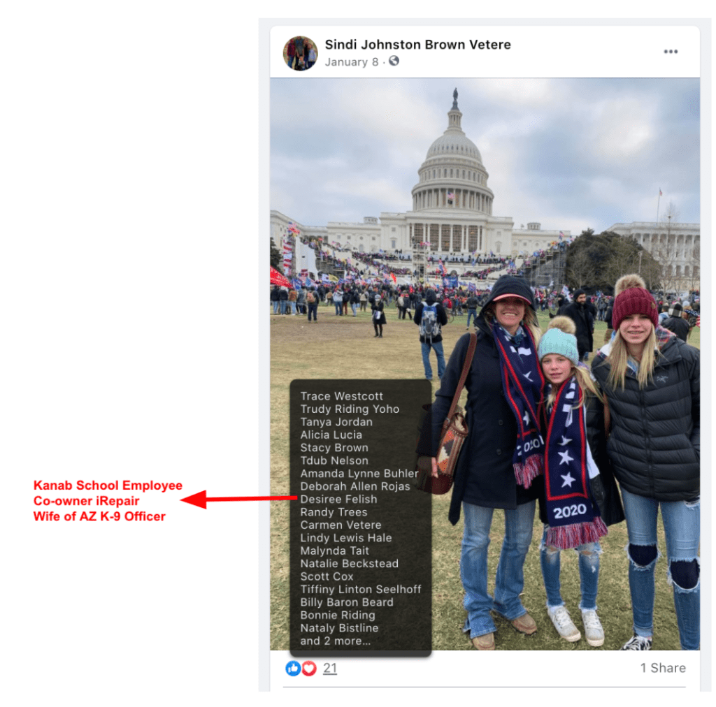- Desiree Felish: co-owner iRepair, Kanab School Employee, spouse of AZ K-9 Deputy