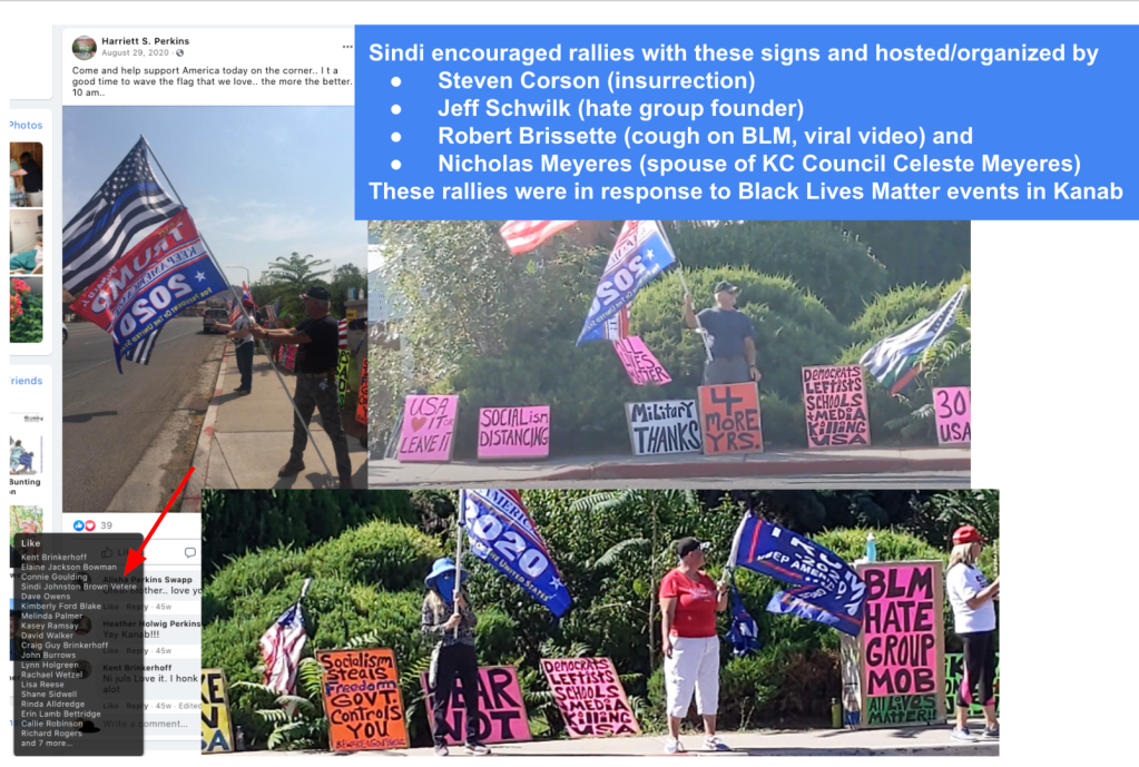 She is a “Kanab Patriot“, attended 2020 MAGA events hosted/promoted/organized by: