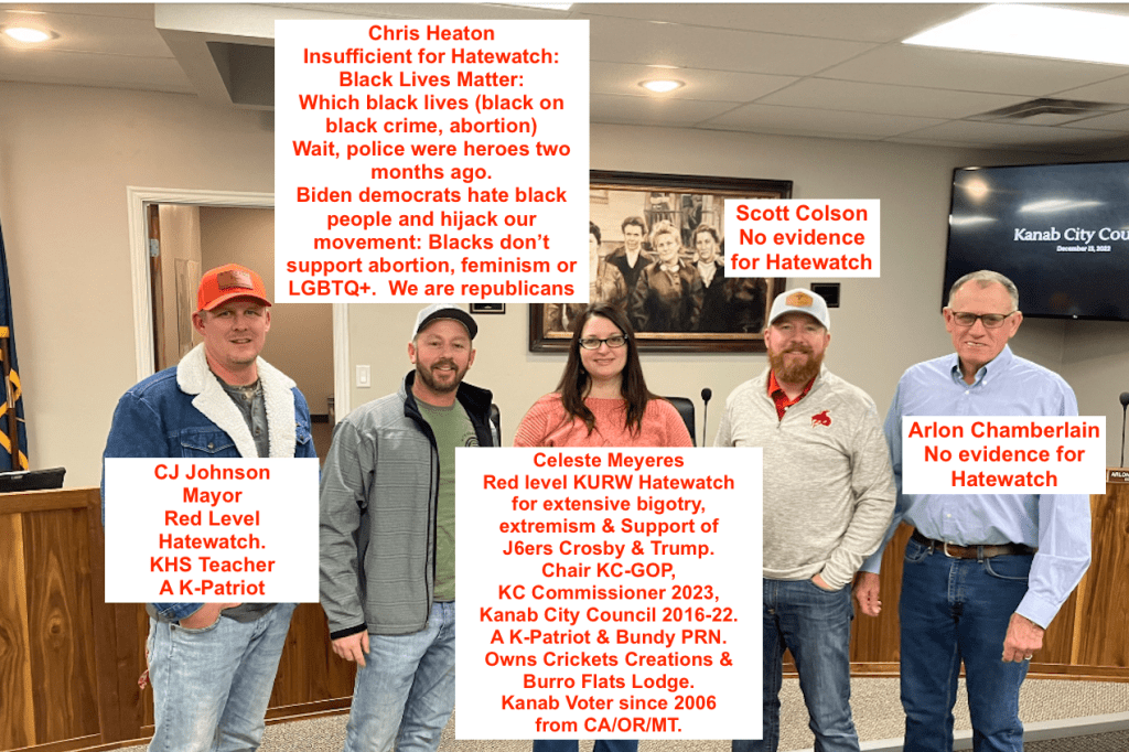 - four candidates who support the local hate page Kanab Patriots. See KURW post Kane County Commissioner Calls Kanab Patriots a Hate Group, But They Are Not the Fringe