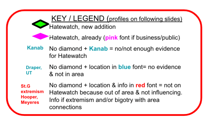 - Kanab Veterans Bigotry/Extremism: Clifford Smart, Kenneth Guinn, Jeff Schwilk, James Head, Jim Torgerson, Dan Watson, Amos Lofing