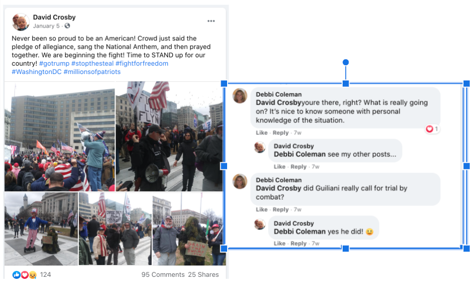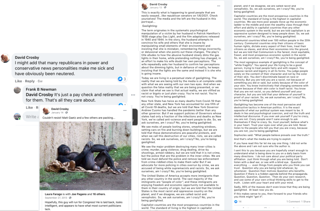 Dave Crosby’s Public Posts After Insurrection: