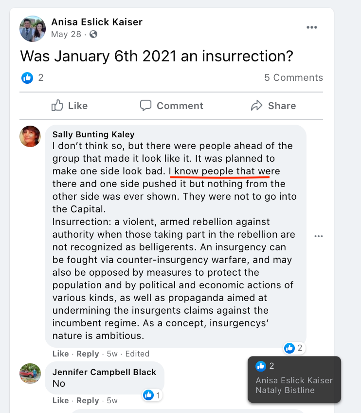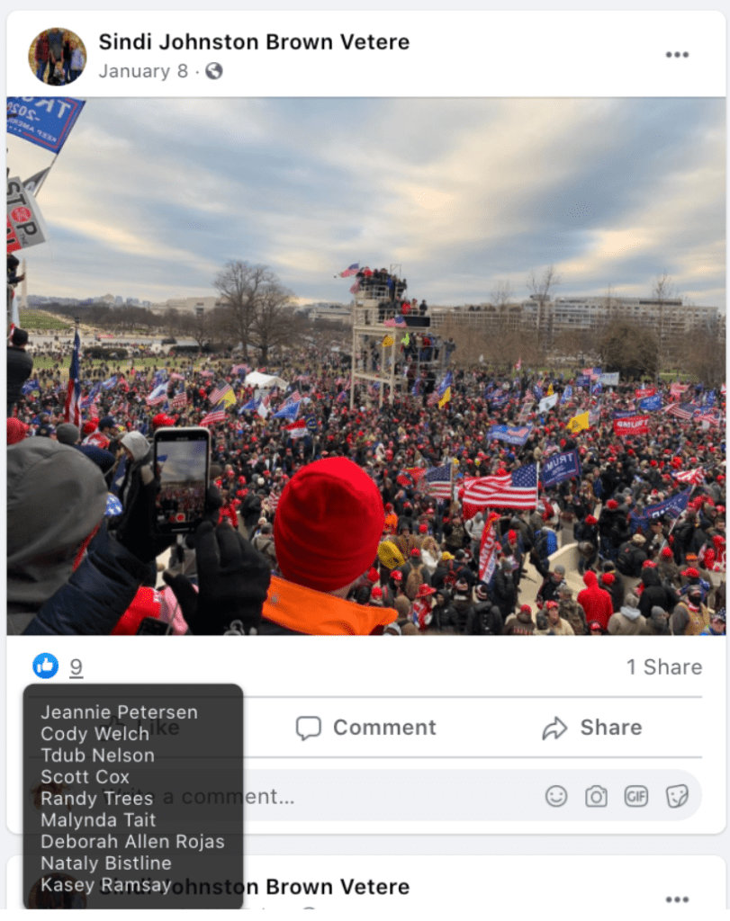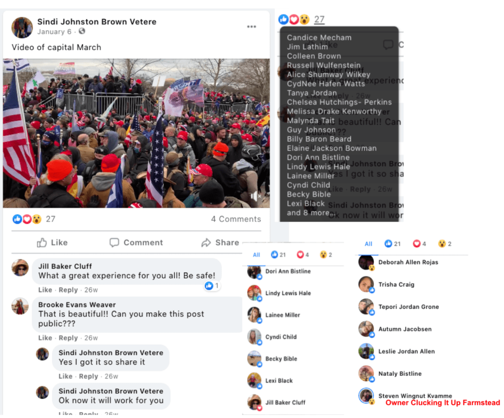 (Updated 08/04/2023): Social media posts reveal that ELEVEN area residents and their family attended the Jan 5-6 Stop-the-Steal rallies and the J6 Insurrection at the Capitol in Washington, DC. Public posts reveal the identity of four adults of the eleven and knowledge of the identities of some by their friends.