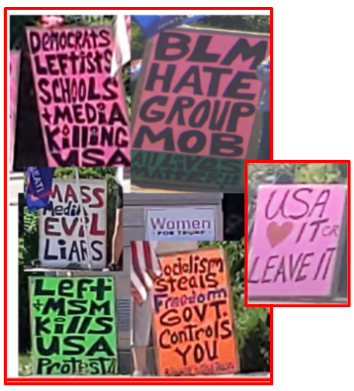 - Colton’s support was a comment “they are the crazy people” expressed after doing his job intervening in an incident between an angered resident and one of Corson’s “Save America” rally sign/flag waivers. (second image below, use arrow keyes).