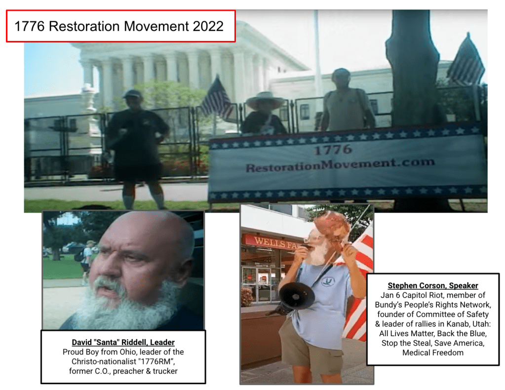 Corson returned to DC in 2022 with the 1776 Revolutionary Movement, 1776RM) and again in 2023 with fellow J6ers Kelly and Josh. He was with the Trucker’s Convoy that branched into 1776RM with leader David Ridell, aka “Santa”.
