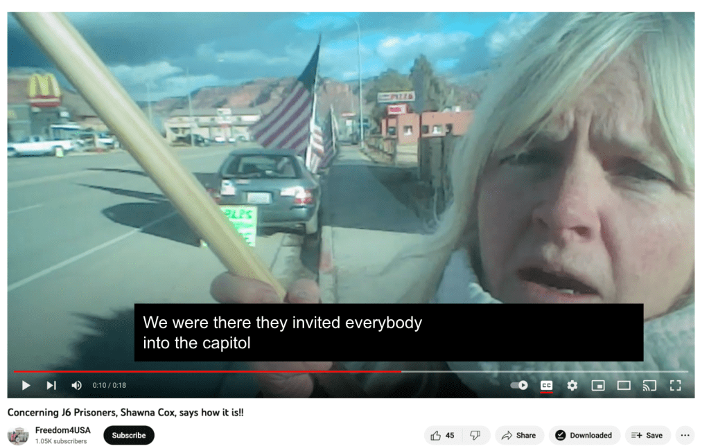 Sindi’s mother, Shawna Cox, describes the unfair treatment of J6ers in jail because “we were there, they were let in”. See video interview posted by fellow J6er Stephen Corson on his YouTube Channel Freedom4USA https://www.youtube.com/watch?v=kUB5m5tdLxE