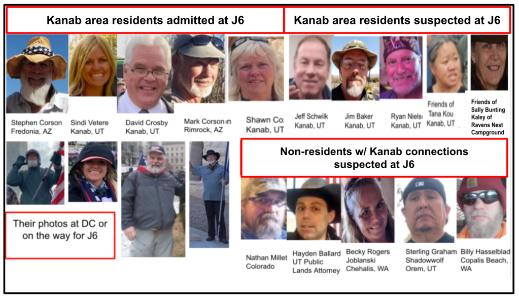 - NEW: Non-residents with Kanab connections: Nathan Millet of Colorado, Hayden Ballard a UT Public Lands Attorney from Fredonia, AZ , and three friends: Becky Joblanski & Billy Hasselblad of Washington with Sterling Graham Shadowwolf of Utah, a Kanab Patriot.