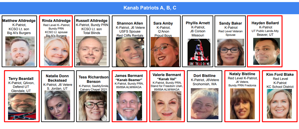 (updated 12/28/2022). One hundred and seventy five (175) area residents engage with Kanab Patriots FB page promoting hate, bigotry, disinformation, personal attacks, business attacks, extremism, war cries, carry weapons against neighbors, public health disregard and defense of criminal behavior including embracing locals who went to DC January 6th to attack democracy. Forty (40) Kanab Patriots are featured in this post with the last names A-C.