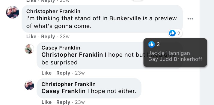 Although Vaelyn no longer lives in the area, she still engages with many residents. Some of her posts were featured in Calls to Fight: Against Neighbors & Against US Government.