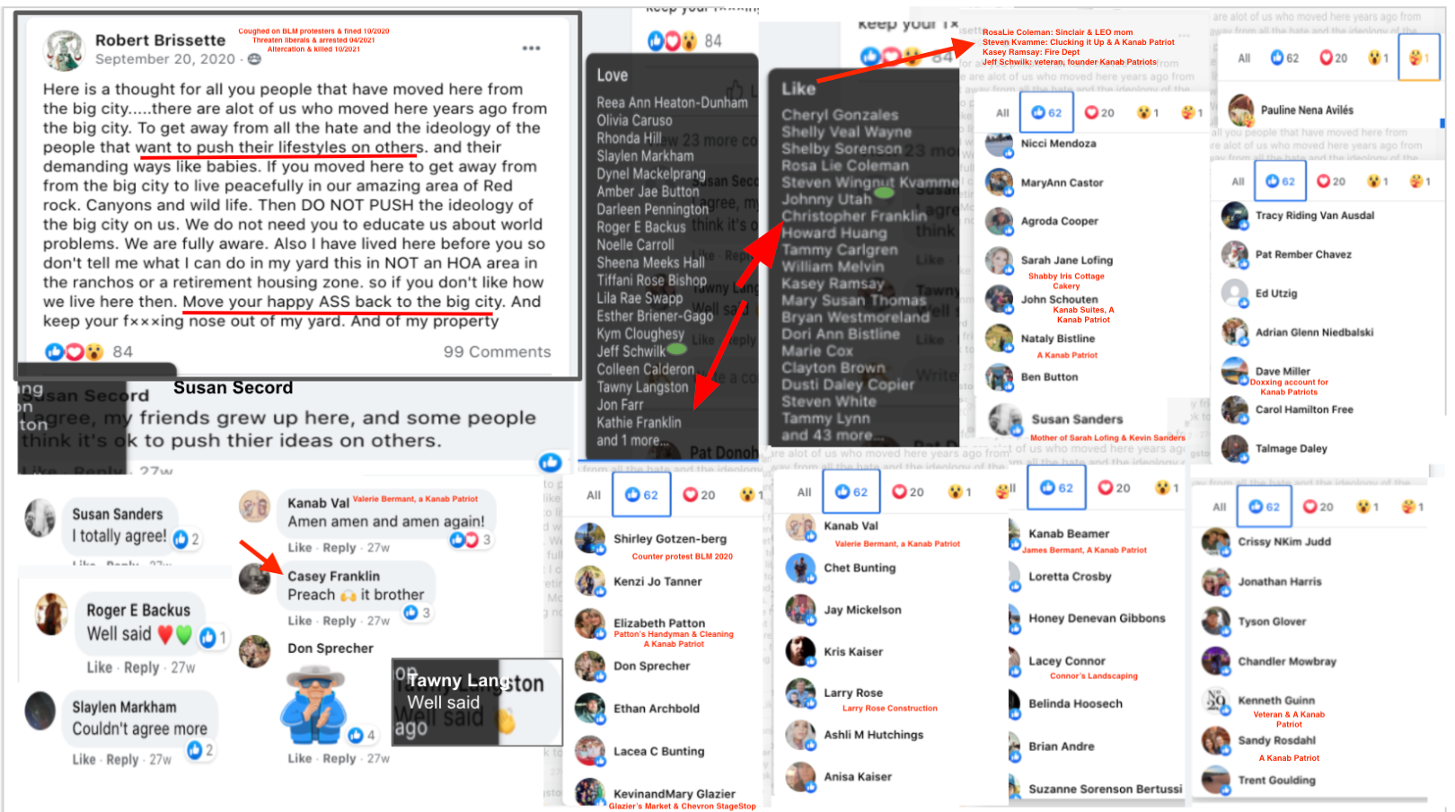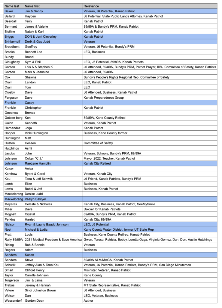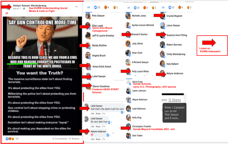 (Updated 02/20/22). The dismissive comment by Kane County Attorney Rob Van Dyke that was presented in the previous KURW post Kane County Commissioner Calls Kanab Patriots a Hate Group, But They Are Not the Fringe, prompted a request to review the list for the “worst for the far right in the Kanab area”. Seventy five of the 400+ on Hatewatch by KURW represent the “red level” public activists/social media users of extremism & bigotry.