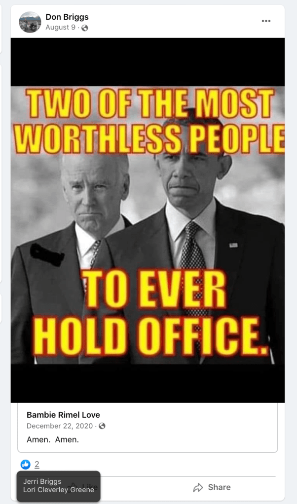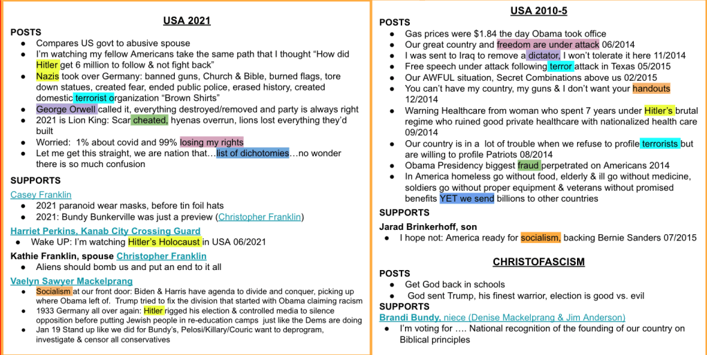 Derik is one of the few who provides context to the cries of the right today. For most, their posts did not start until Trump’s presidency. Derik’s posts began with Obama and show the same old cries “Gas prices, our guns, Nazi/Commies, fraud, stolen freedom & destruction”. The handful of others of the 400+ on Hatewatch by KURW who posted the same cries before Trump are