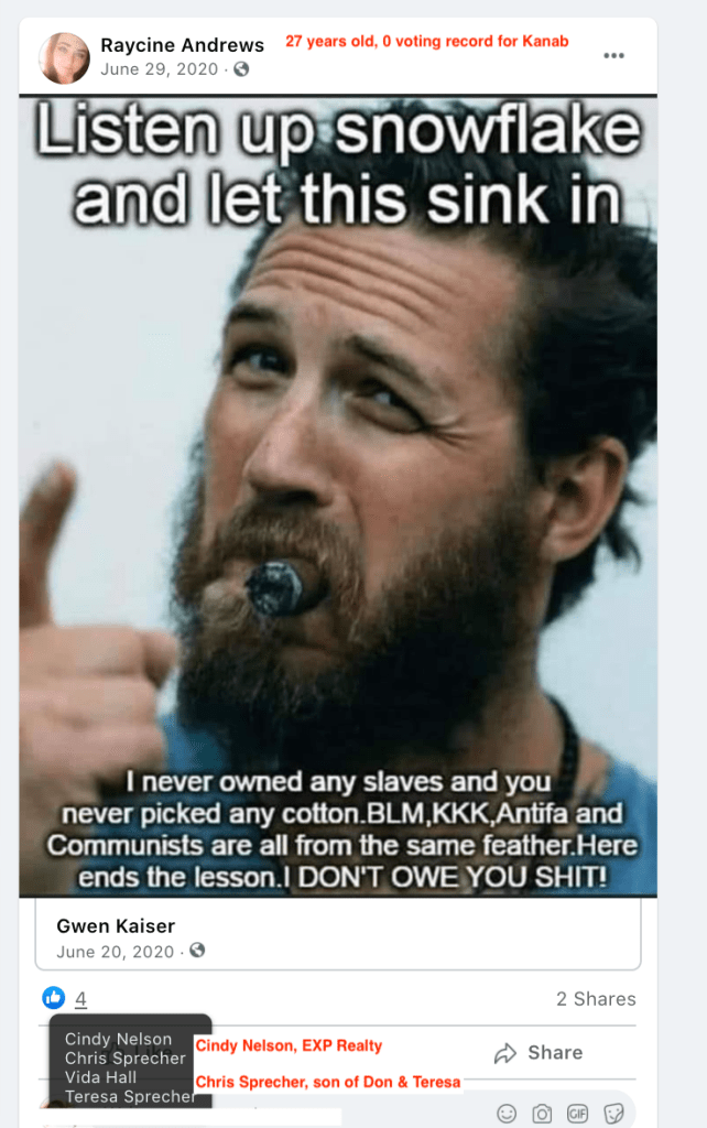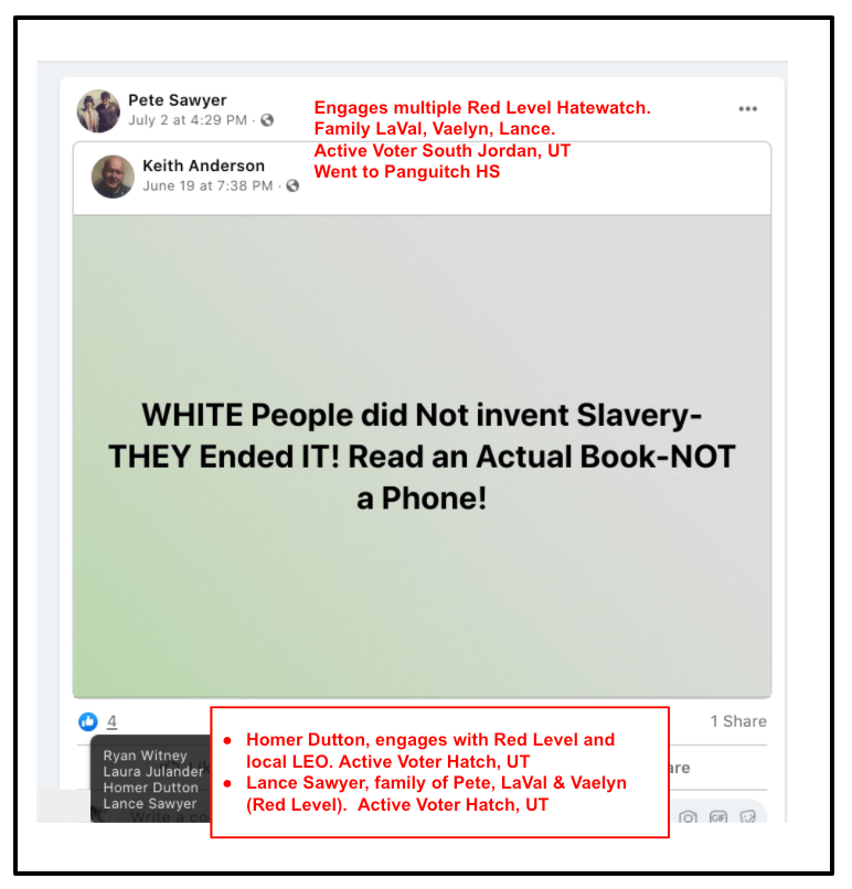 - Posts the same VIOLENCE, BIGOTRY & EXTREMISM as several of his friends featured in Meet Your Neighbors: Red Level