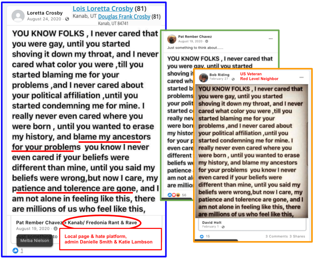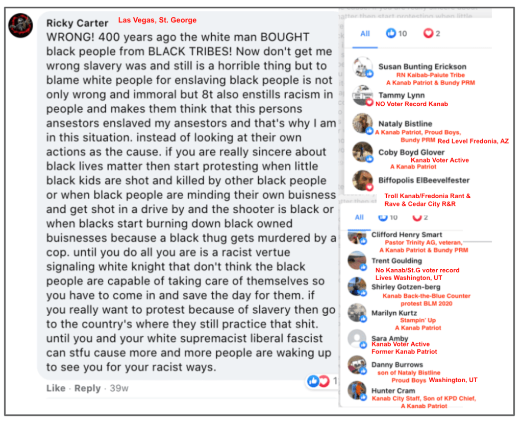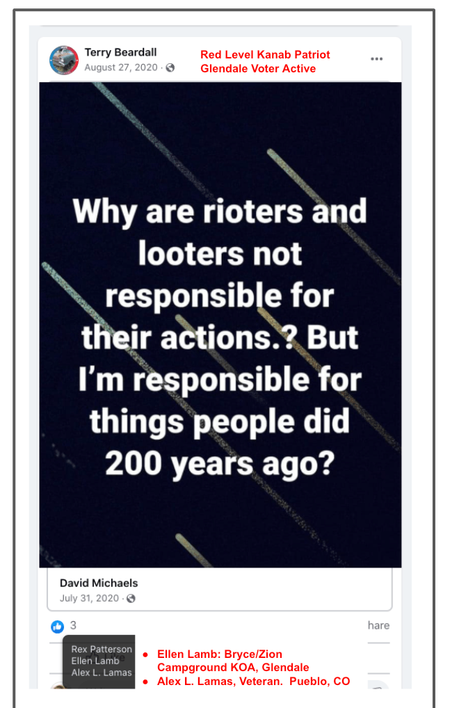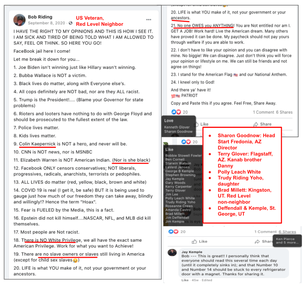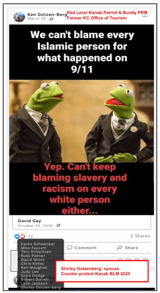 TRENT GOULDING is not in KURW posts but engages with Red Level, support the Franklin family’s trans-hate and racial bigotry on Kanab/Fredonia Rant & Rave.