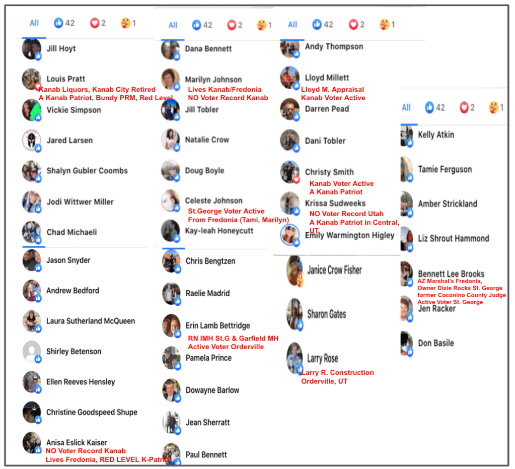 MARILYN KURTZ is not in KURW posts. She is a Kanab Patriot, supports and shares content of Red Level Neighbors