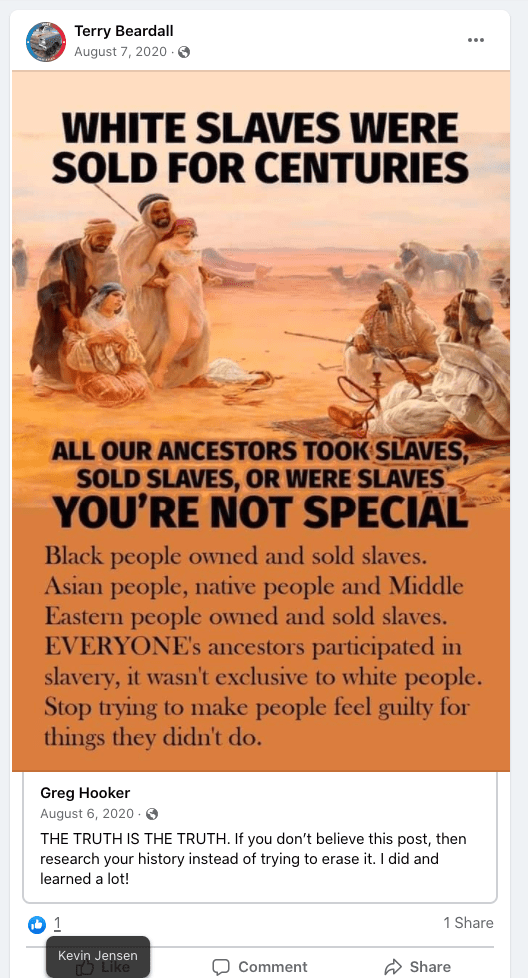 KEVIN JENSEN is out of KURW area. His local interaction is limited to supporting most of Terry Beardall’s posts of extremism & bigotry.