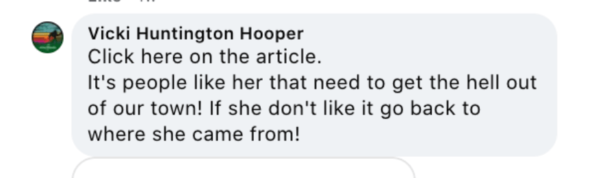 It’s people like her [exposing hate online] that need to get the hell out of our town!